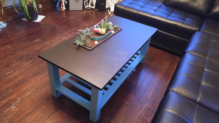 És innentől tényleg nincs más hátra, mint összerakni egy teljesen egyszerű dohányzóasztalkát, a virágládába pedig mesebeli kertecskét telepíteni.