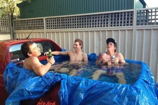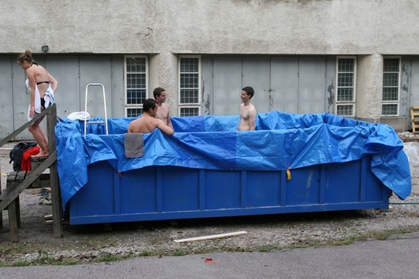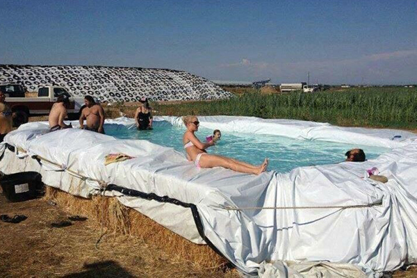A hűsölni vágyó ember találékonysága pedig határtalan: van, aki szalmabálákat vagy épp egy kukát, más a teherautó platóját használja medenceként, sőt, akadnak olyanok is, akik a nappalit…