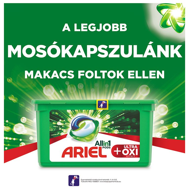 Az ARIEL Allin1 PODs, az Ariel legújabb, továbbfejlesztett mosókapszulája megoldást kínál arra, hogy felszabadultan élvezhessük a szabadidőnket, ráadásul hosszabb ideig élvezhetjük ruhadarabjainkat, és eközben közvetlen környezetünket és a földet is óvjuk.