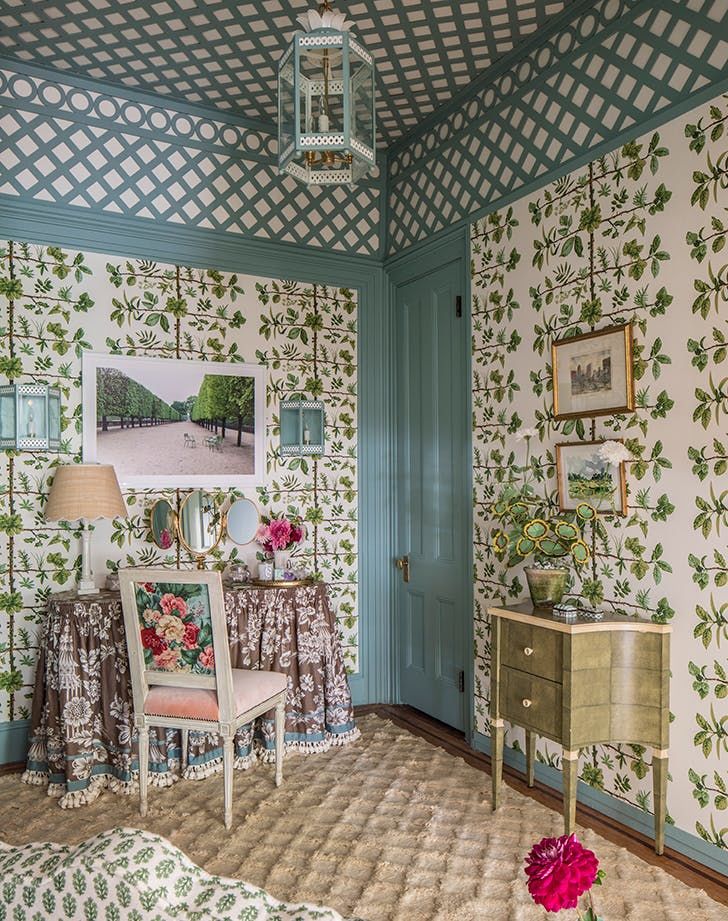 Ez a szoba önmagáért beszél a mintás falaival, kissé eklektikusnak ható bútoraival és a plafonról lelógó, kalitkába zárt lámpájával. Nem mondjuk, hogy nem sok, de egy-két részletét lemásolnánk!