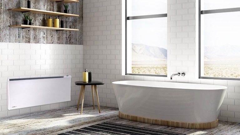 Fényárban úszó fehér fürdőszoba eletromos fűtéssel – teljes a skandináv életérzés (Fotó: NORDART.hu)