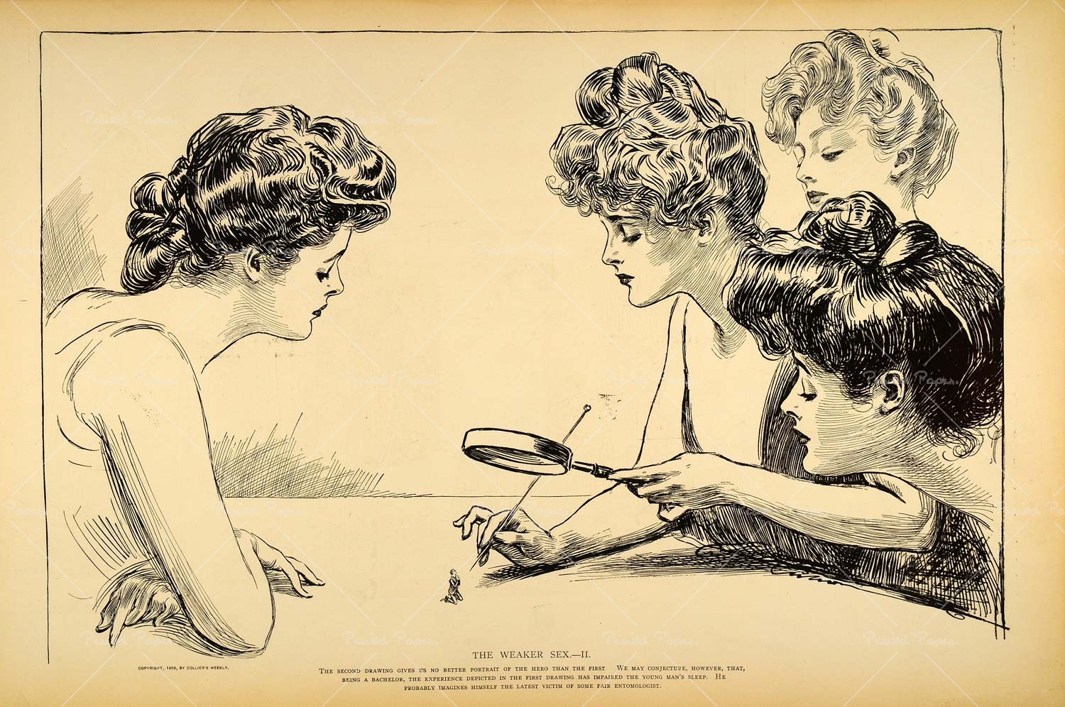 A lányoknak hihetetlen hatalma volt a férfiak felett. Gibson illusztrációiban az erősebbik nem kivétel nélkül kisebb, alávetettebb módon jelent meg, mint aki elveszít minden erőt és hatalmat, ha egy igazi Gibson-lány közelébe kerül. A fiatal lányok, ábrázolása szerint, mindig egyedülállóak, szabadok voltak, olyanok, akik bár kihasználták függetlenségüket, vágytak a romantikára. Az idősebb, férjezett asszonyokat gyakran ábrázolta úgy, mint akik életéből a házasság által eltűnt a romantika, ettől való frusztráltságukat pedig csak az enyhítette, ha barátnőikkel voltak vagy kisgyerekeik társaságában töltötték idejüket.