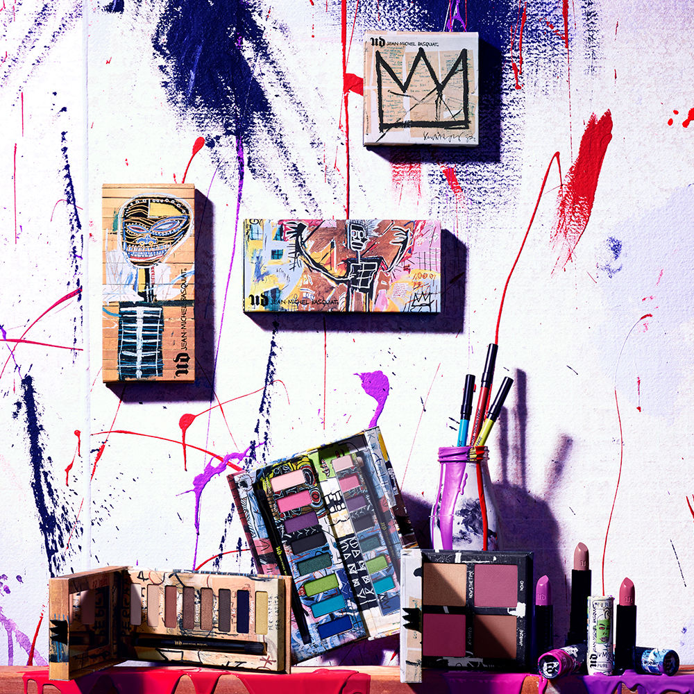 Szemhéjfesték paletták, szemceruzák, rúzsok, arcárnyaló paletta és még piperetáska is megtalálható a szettben, amelyek külső megjelenése egytől egyig Basquiat valamelyik művét ábrázolja. A paletták ráadásul ez alkalommal nem papír, hanem az eredeti festményekhez illően vászon alapú dobozt kaptak, hátoldalukon egy-egy pici mélyedéssel, így akár mini repróként szobánk falára is kitehetjük őket.
