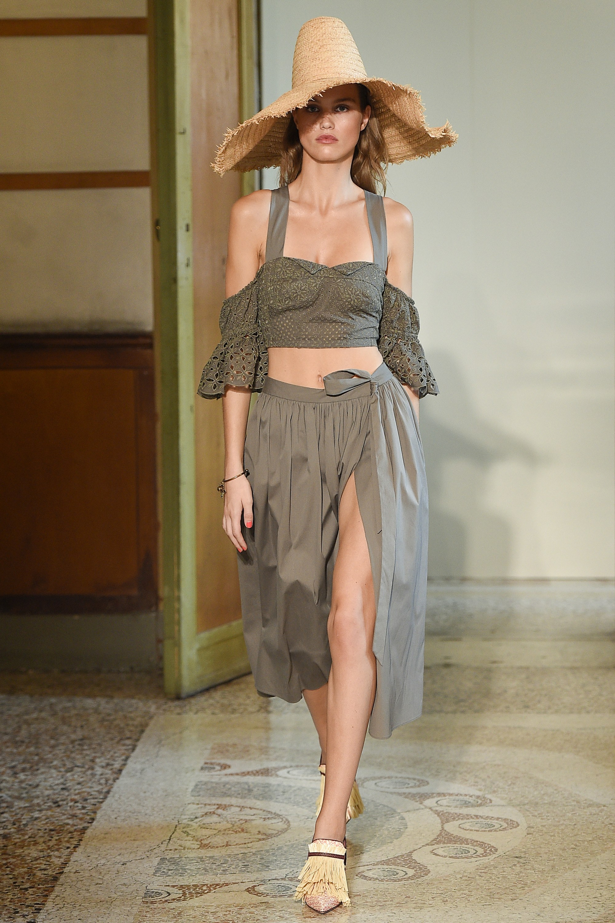 A kifutókon is láthattunk belőlük jó pár változatot, a klasszikus szalma színű mellett a sötét árnyalatúak domináltak – lásd az Emporio Armaninál -, méretben pedig több divattervezőnél is feltűntek extra széles karimás változatok is (Blumarine, Jacquemus). Ezek ugyan nem a legpraktikusabb viseletek, de kétségtelenül látványos összképet eredményeznek.