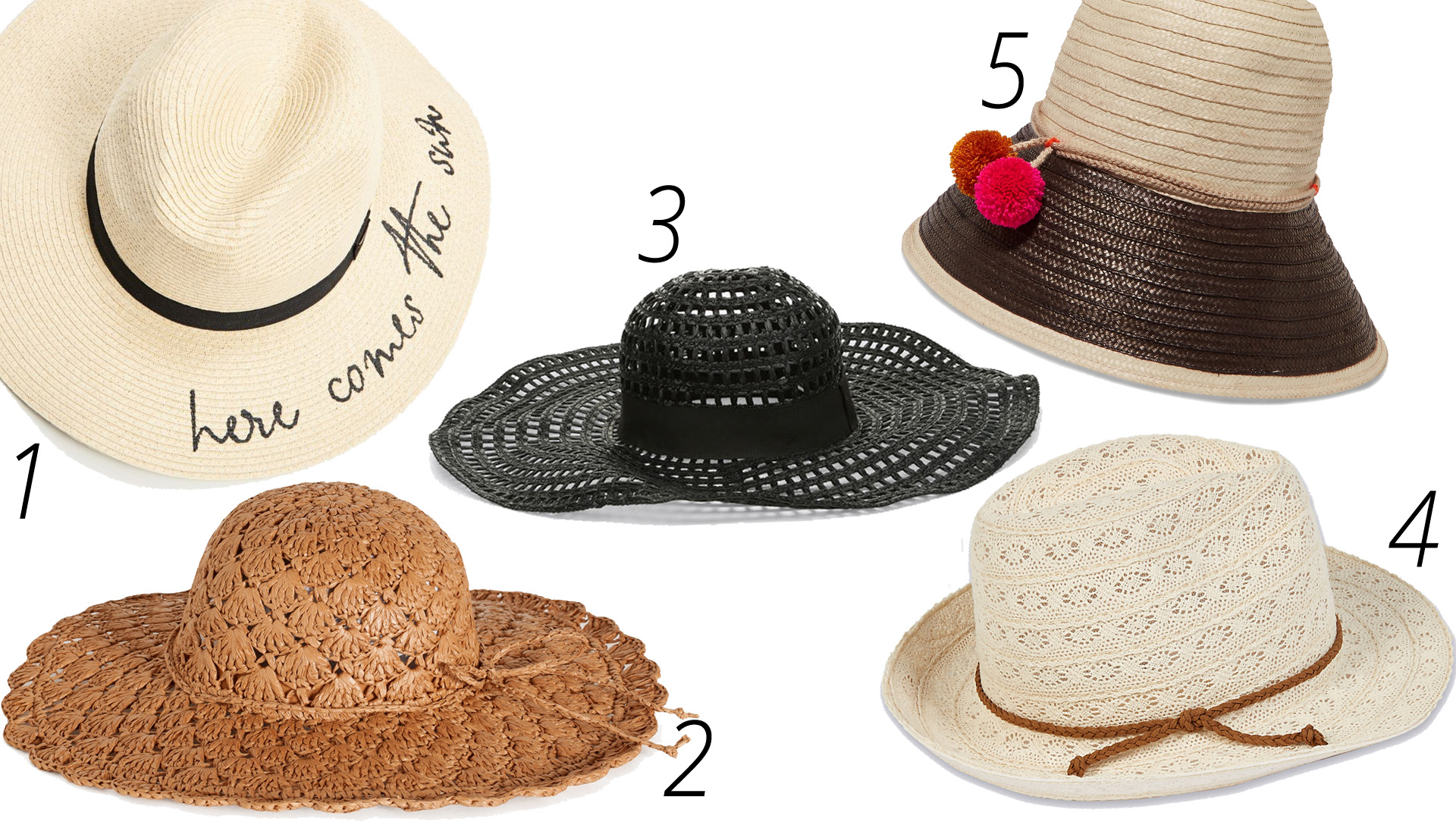 1. Feliratos, fekete pánttal – Mohito – 2. Lyukacsos szövésű barna szalmakalap – Twinset – 3. Fekete, négyzetrácsos szövésű kalap – Max Mara – 4. Barna-bézs pom-pom rátétes kalap – Sophie Anderson – 5. Csipke mintás szalmakalap – Marks and Spencer