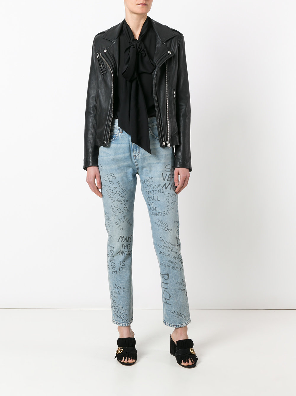 A high end márkák közül a Maison Margiela és Raf Simons nevéhez köthető a legnagyobb lelkesedés a firkák és graffitik iránt, de ne feledkezzünk meg a Louis Vuittonról sem, ami még 2001-ben jelentette meg a Stephen Sprouse közreműködésével feliratozott kollekcióját.