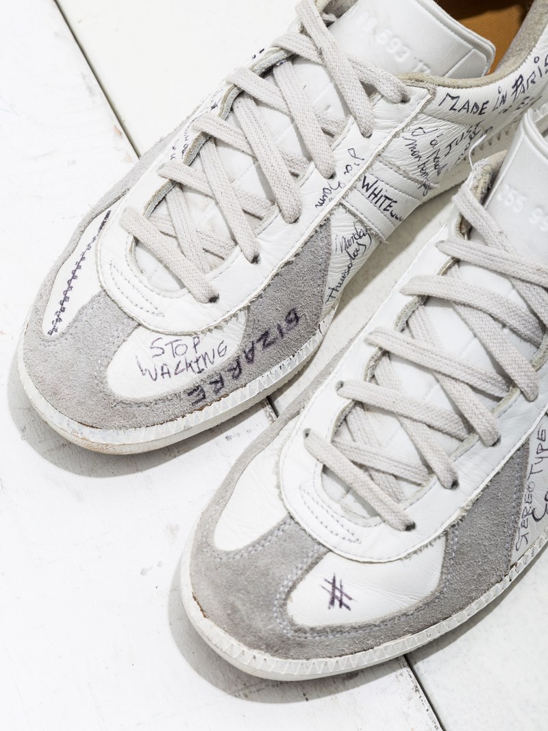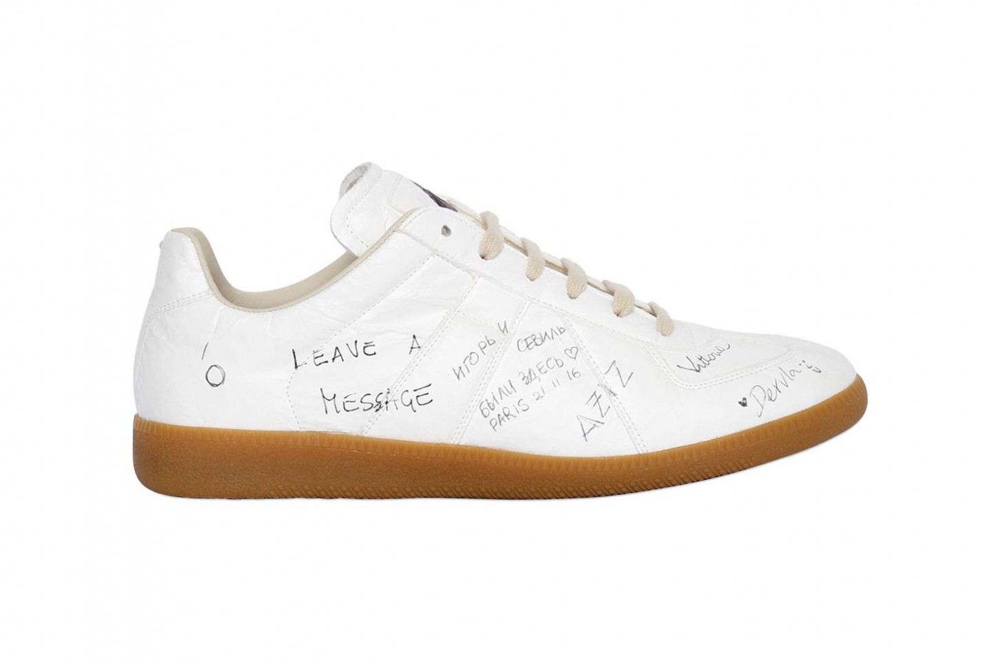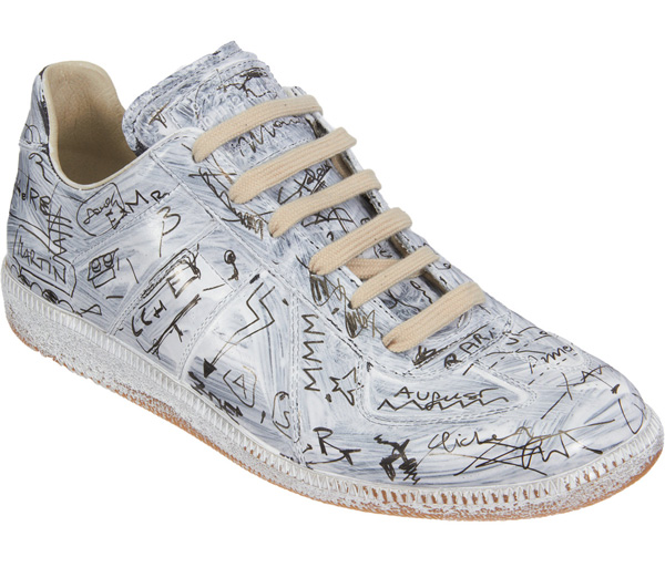 Raf Simons a 2015-ös őszi-téli férfiruha kollekciójának jó pár darabját dekorálta ily módon, a Maison Margiela pedig ennél is régebben kezdett bele a rajzolgatásban. 2002 környékén a divatház felvásárolt néhány vintage GAT sneakert, ami nem volt más, mint a Német Hadsereg ’70-es évekbeli tornacipője katonái számára, amiket a Puma vagy az Adidas gyártott – ezt nem tudni pontosan. A cipőket aztán Margiela egy gyors sorszámozás után körbeadta munkatársai számára, hogy azokra írjanak, rajzoljanak valamit kedvük szerint. Az így elkészült egyedi darabokat végül eladták, mára pedig vagyonokat érő ritkaságnak számítanak, amik elvétve bukkannak csak fel árveréseken is.