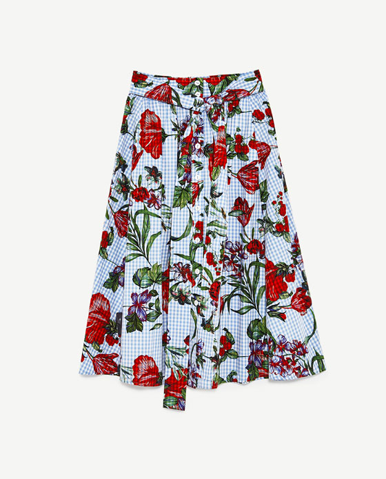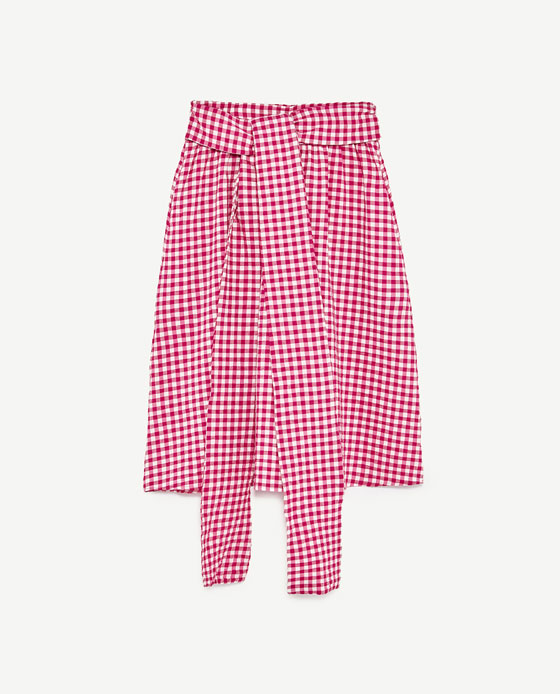 1. Fukszia kockás szoknya övvel – Zara / 2. Citromsárga ceruzaszoknya – Marc Cain / 3. Virágmintás gingham szoknya – Zara / 4. Fekete-fehér miniszoknya – Topshop / 5. Piros kockás ceruzaszoknya – Altuzarra