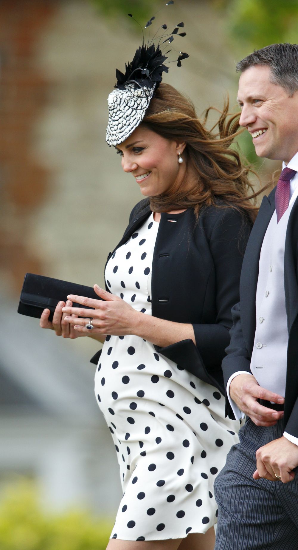 Öltözékei sohasem voltak híresek arról, hogy kihívóak lennének, ekkor azonban még visszafogottabb ruhákat viselt, amelyek hossza immár térdéig ért, szabásuk pedig egy leheletnyivel bővebb volt. Magassarkú cipőit azonban egyik babaváros időszaka alatt sem dobta a sarokba, a hivatalos eseményeken mindig a tőle megszokott kerekített orrú, klasszikus fazonokat viselte, leggyakrabban sötétkék, nude, fekete és halványszürke színekben. Ha irodában dolgozunk, Katalin hercegné ruhatárából számtalan ötletet meríthetünk visszafogott, mégis elegáns öltözék összeállítására, amelyek kerülik a kismama ruhák sablonosságát és kényelmesek is egyszerre.