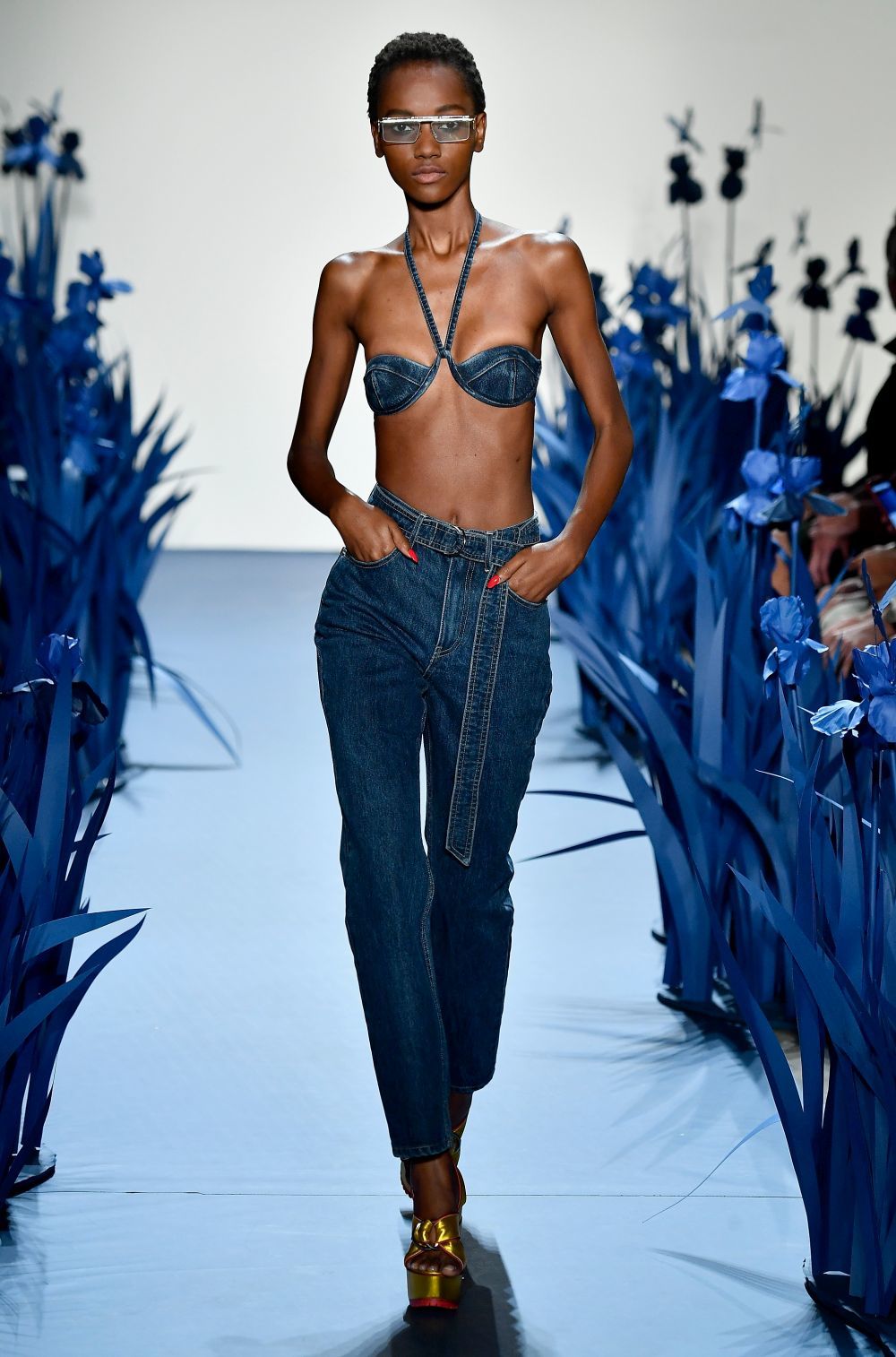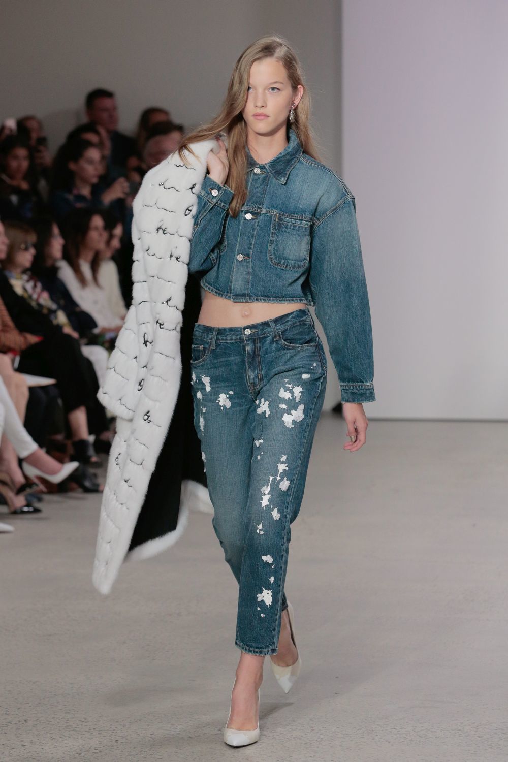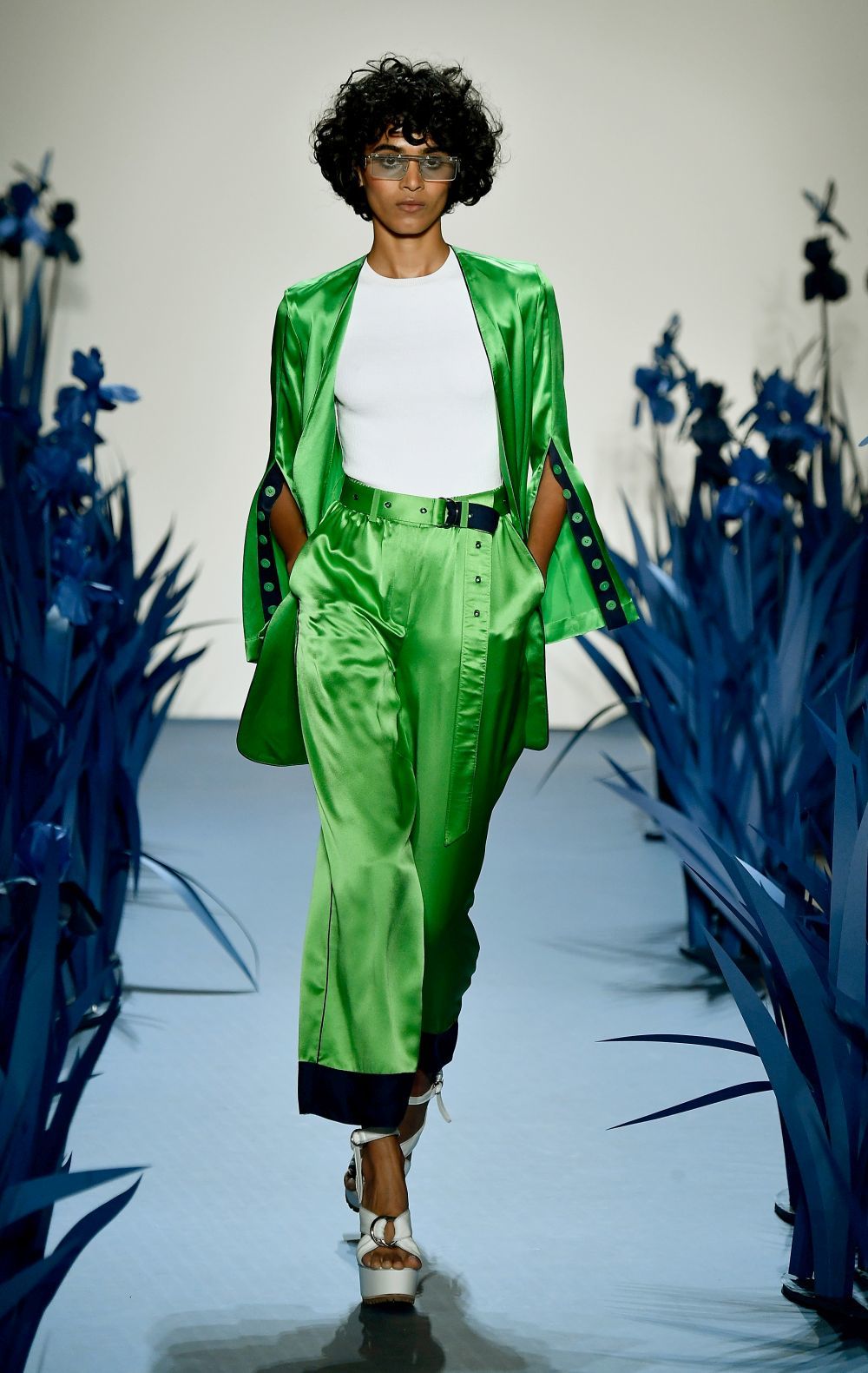 A skinny fazonok helyett tavaszra is a bővebb szárváltozatokra érkezett a legtöbb ajánlás, amelyek mondhatni természetes jelleggel kapták meg a magas derékvonalat is. Farmert farmerral továbbra is bátran viselhetünk (Oscar de la Renta), mint ahogyan az elegáns szettekbe is beválogathatjuk kedvenc alapdarabunkat (Brandon Maxwell).