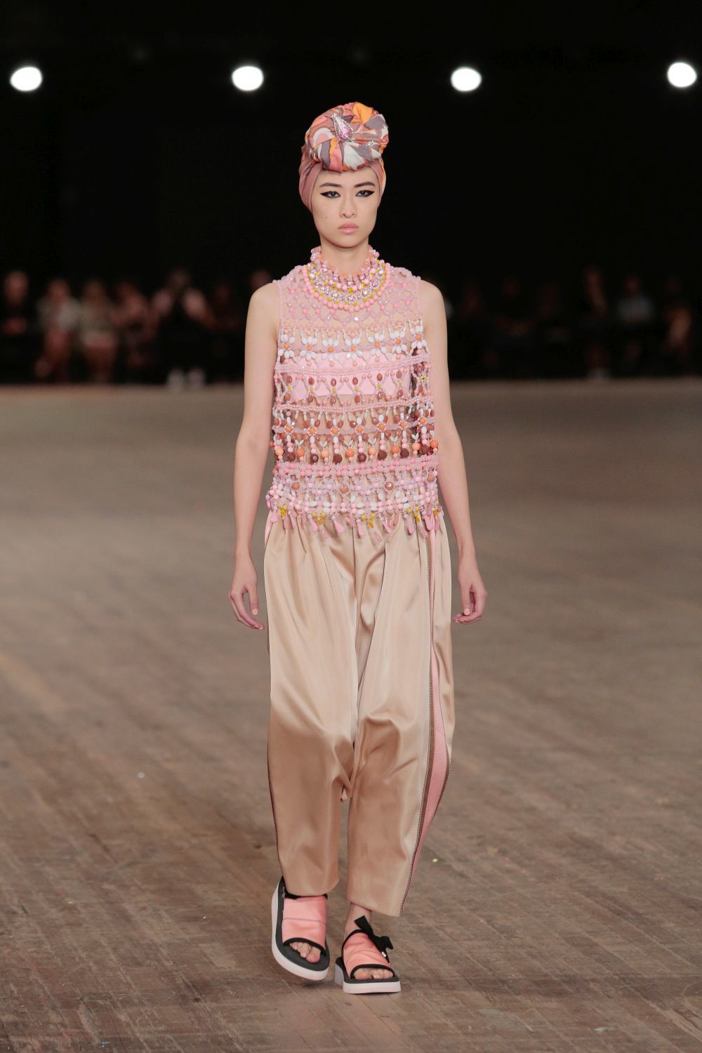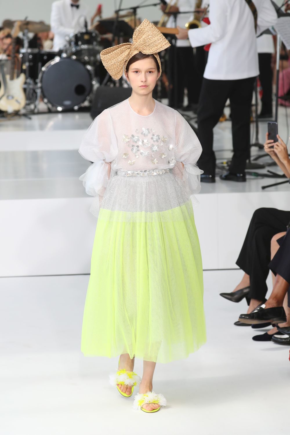 Delpozo lányain raffia fejpántokat láthattunk, amelyek egy része méretes masnival volt ékesítve, amik olybá tűntek, mintha csak a századelő habos-babos ruhás kislányainak cuki masnijai ihlették volna a tervezőt. Az anyagválasztás tökéletes nyári hangulatot idézett, egyúttal valódi kalappá is avanzsálta a fejdíszeket.