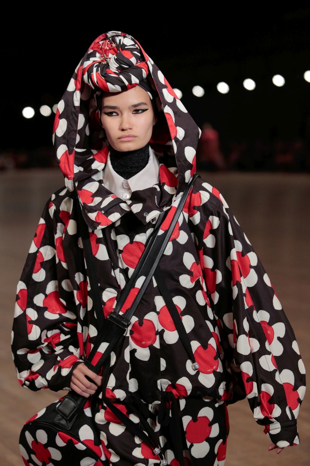 Marc Jacobs teljes tavaszi kollekcióját az egzotikum és a ’80-as és ’90-es éveket idéző retro érzés keveredése jellemezte, mi sem illett volna hát jobban a ruhákhoz, mint a méretes fejkendők és turbánok. A selyemcsodákat Stephen Jones tervezte, különleges, változatos megkötési módokat felvonultatva a kifutón.