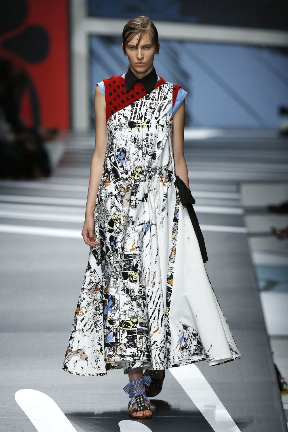 A Versace a ’90-es évekbeli mintáit porolta le, a Gucci és a Dolce & Gabbana pedig hozta a tőle elvárt minta kavalkádot, amelyek jól jellemzik kollekcióikat már egy ideje. A Prada teljes kollekcióját a képregények stílusának szentelte, a Moschino pedig az Én kicsi pónim mesehőseivel dekorálta agyon a ruhákat.