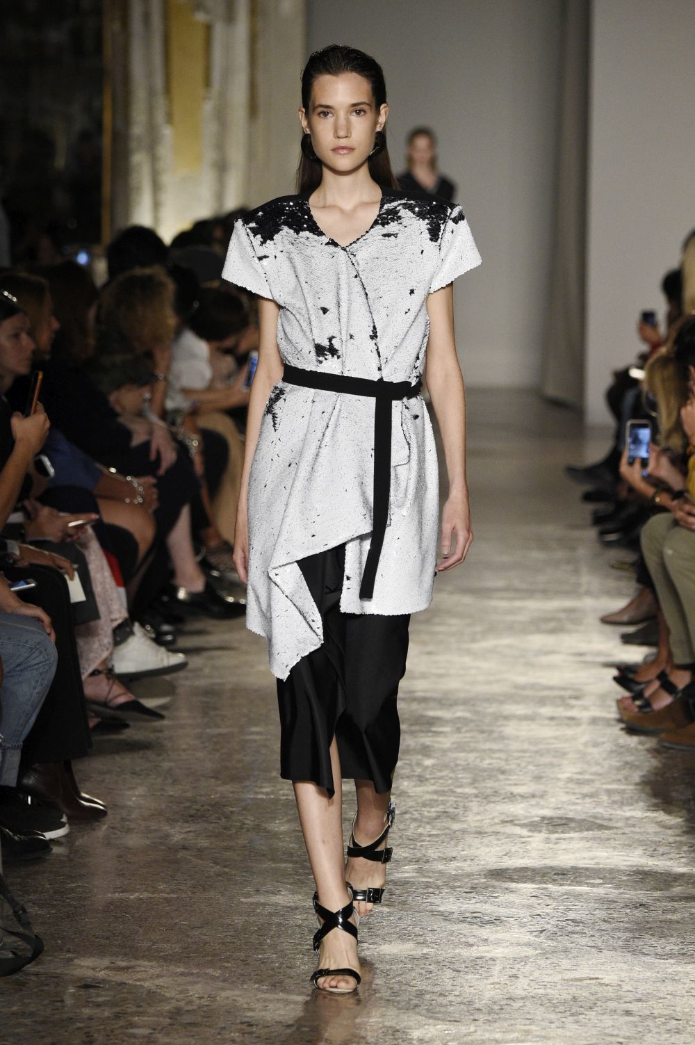 New York és London után Milánót is magával sodorta a csillogás. A selyem és szatén csodák mellett flitterekkel kirakott ruhák tucatjait lehetett látni. Apró korongocskák (Alberta Ferretti) és méretes, fénylő lapok (Bottega Veneta) egyaránt rákerültek a ruhákra, amiktől a finom anyagok csak még lágyabbá váltak – ránézésre legalábbis.