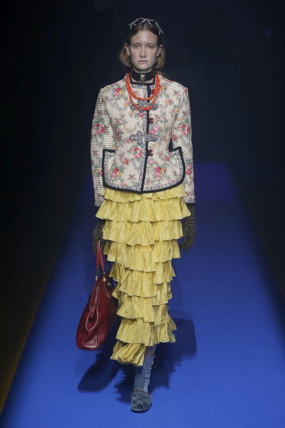A tüllök alternatívájaként több kifutón is találkozhattunk fodros szoknyákkal, amelyek hol légiesen libbentek (Vivetta), hol pedig barokkos túlzásként csücsültek a ruhákon több sorban (Gucci). Elég sanszos, hogy találkozunk velük majd fast fashion vonalon is, hiszen számos különböző stílusba bele lehet építeni a fodrozódó szoknyákat.