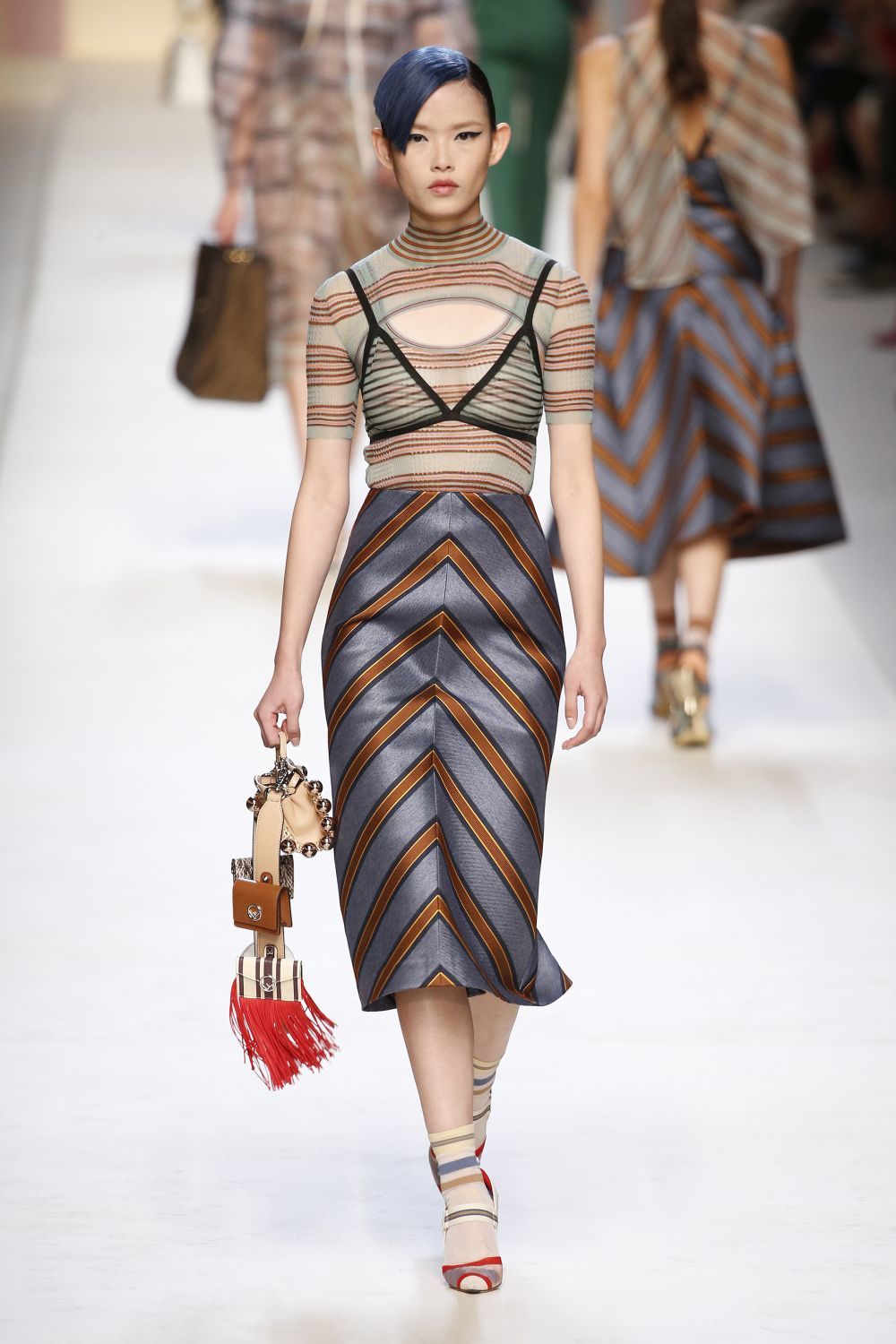 A libbenős, méretes szoknyák mellett a decensen szexi ceruzaszoknyák sem hiányozhattak a kifutókról. A térd alá érő fazonok a Max Mara kollekciójában trükkösen pocieltakarós derékmegoldást kaptak, a Fendinél pedig a csíkozás kialakítása lett roppant előnyös.