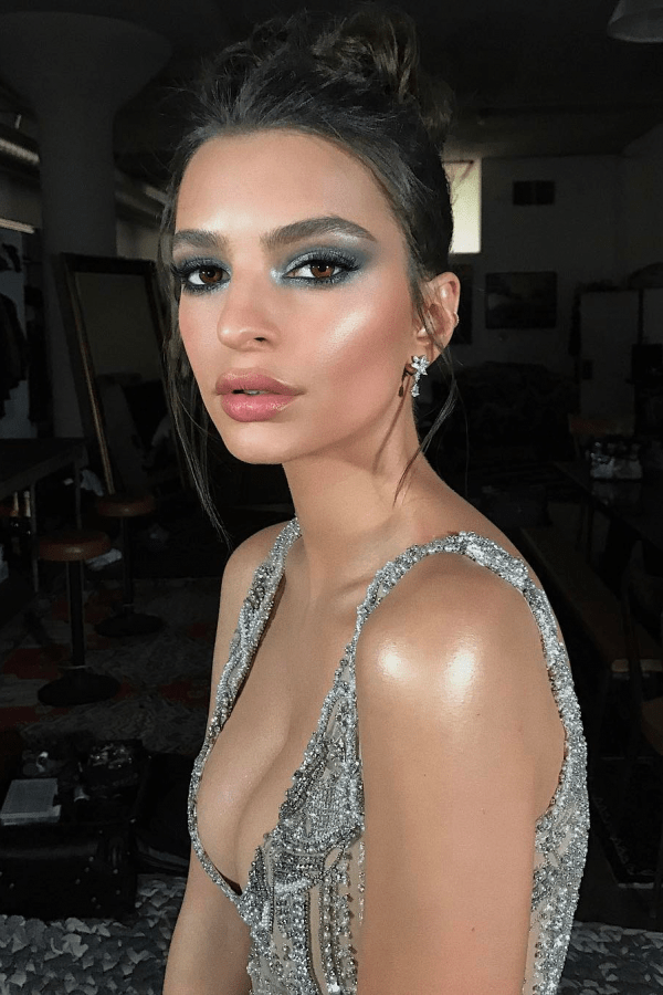 Az Oscar’s Vanity Fair partijára csillogó ruhájához illő, hasonlóan szikrázó, ezüstös sminket készíttetett, amihez az enyhe szájfény és nude rúzs bőven elegendő volt kiegészítésként.