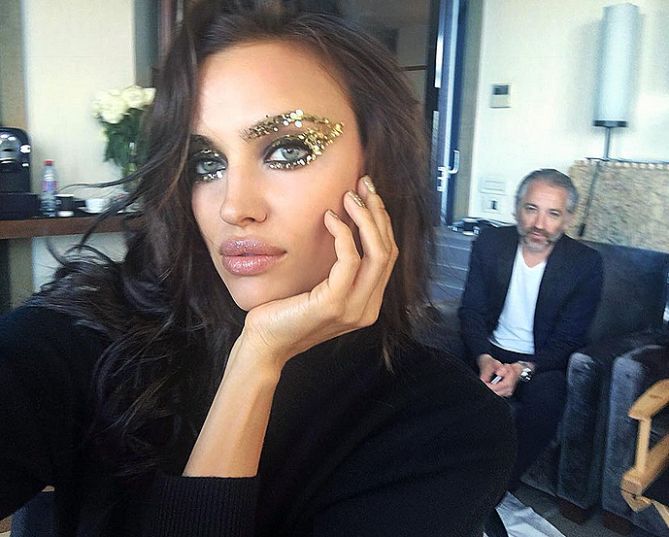 A modell még a Cannes-i Filmfesztiválról osztotta meg a fenti képet, amin egy kicsit sem hétköznapi sminkkel látható. Aranyszínű csillámokat nem csak a szemére, de szemöldökére is tettek, amitől a látvány egészen futurisztikus lett.