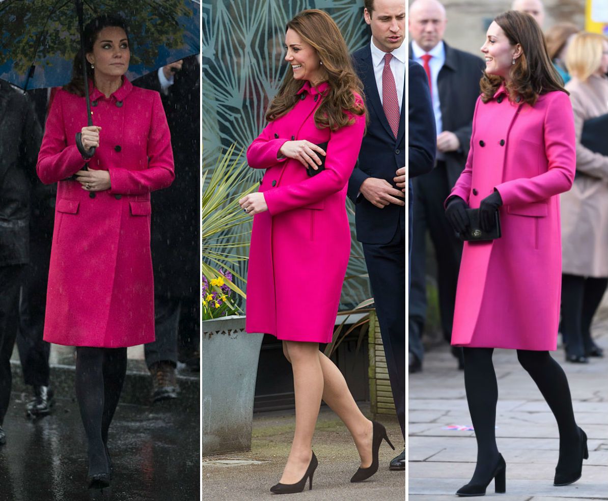 A legkevésbé sem lepődünk már meg azon, ha Katalin hercegné többször is felveszi ugyanazt a ruhát, hiszen ez bevett szokása. A hercegné a minap Coventrybe látogatott férjével, ez alkalomból pedig azt a rózsaszín Mulberry kabátot viselte, melyet 2014 decemberében és 2015 márciusában is láthattunk már rajta, amikor Charlotte hercegnővel volt várandós.