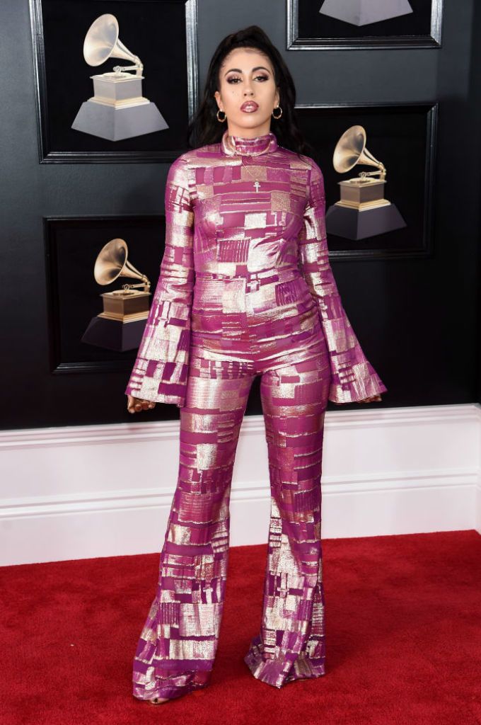 Kali Ulchis kolumbiai-amerikai énekesnő mintha a 90-es évekből, egy B-kategóriás lánycsapat videoklipjéből teleportált volna a 2018-as Grammy vörös szőnyegére.