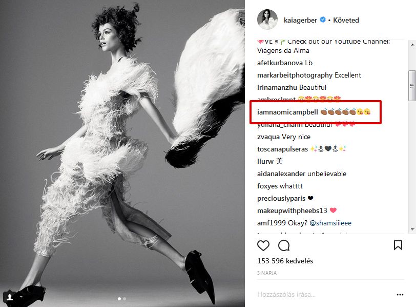 Pár cuki emojit begyűjteni egy fotónkra anyukánk támogatólelkű kolleginájától nem nagy kunszt, Azonban ha az illető maga Naomi Campbell, az már valami.