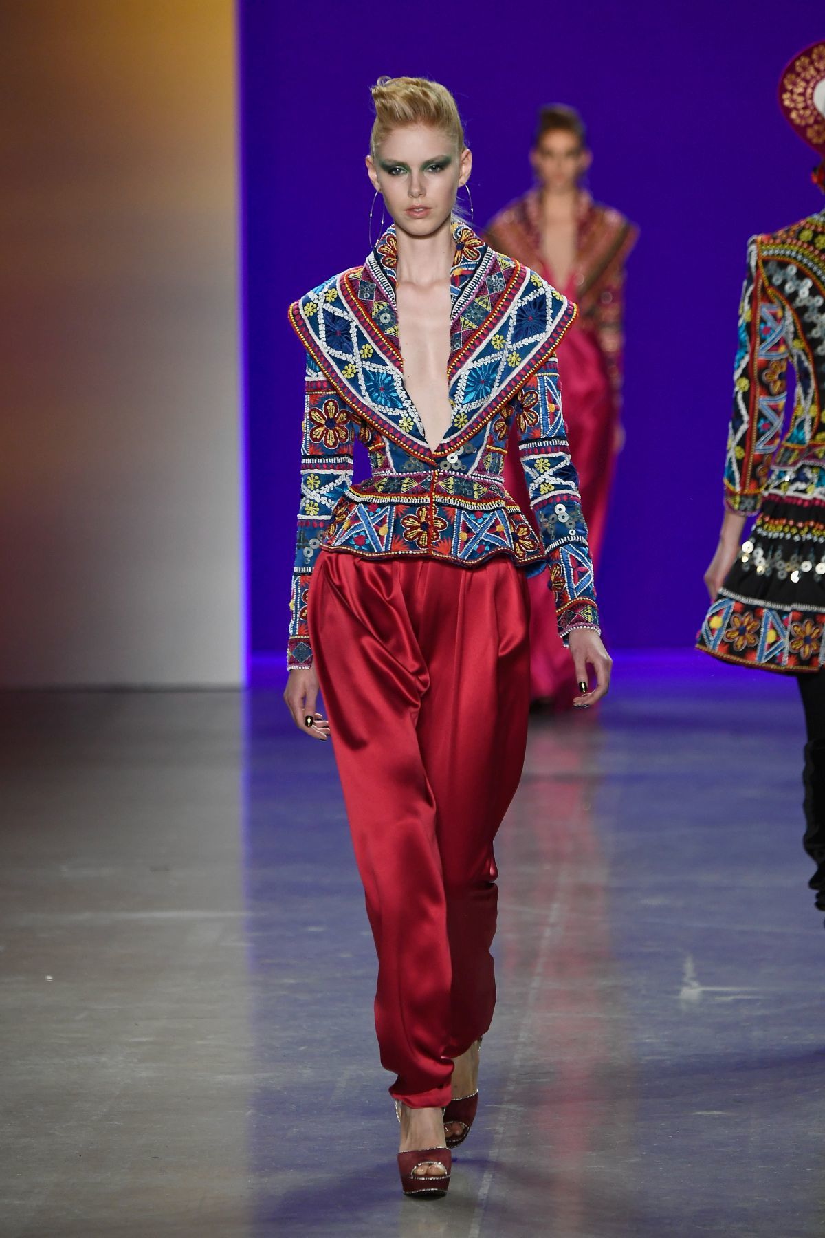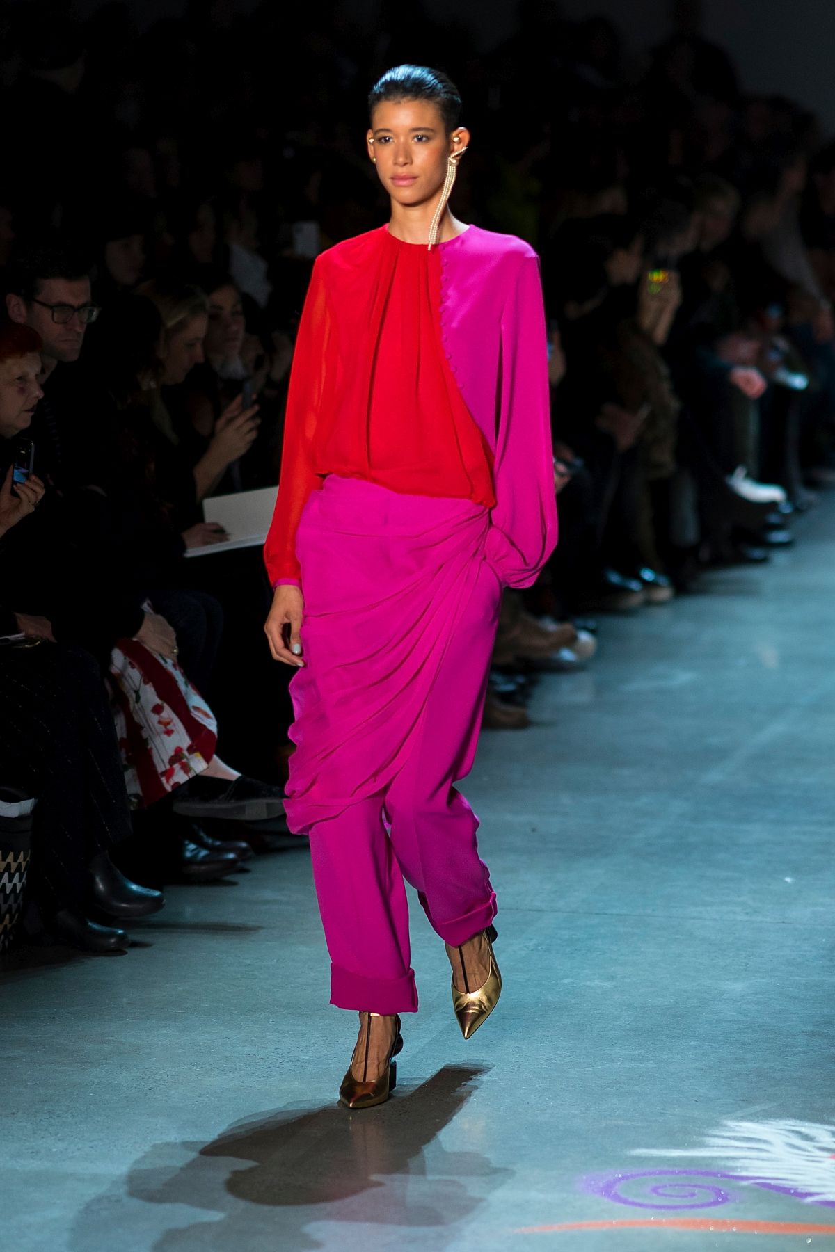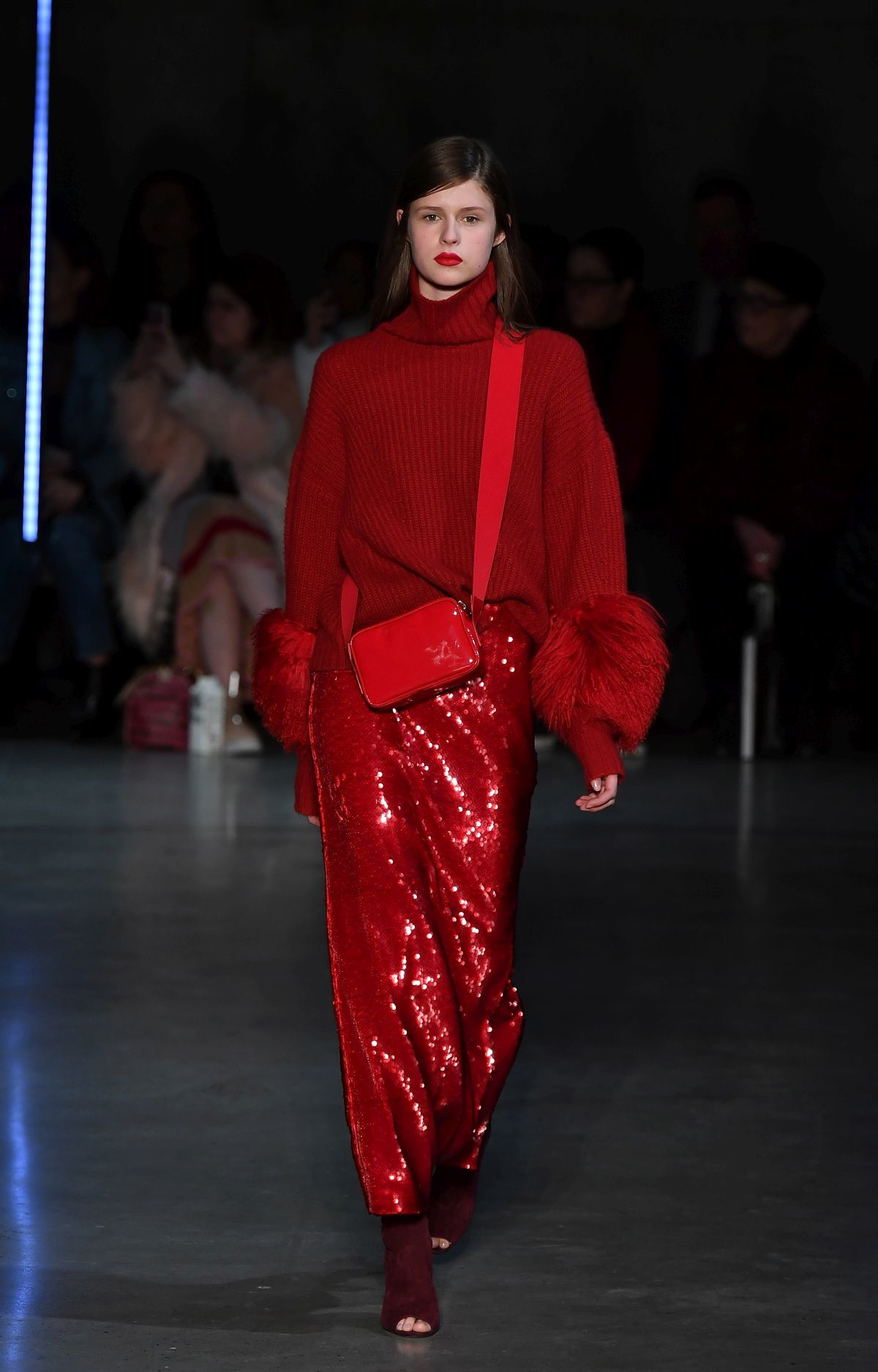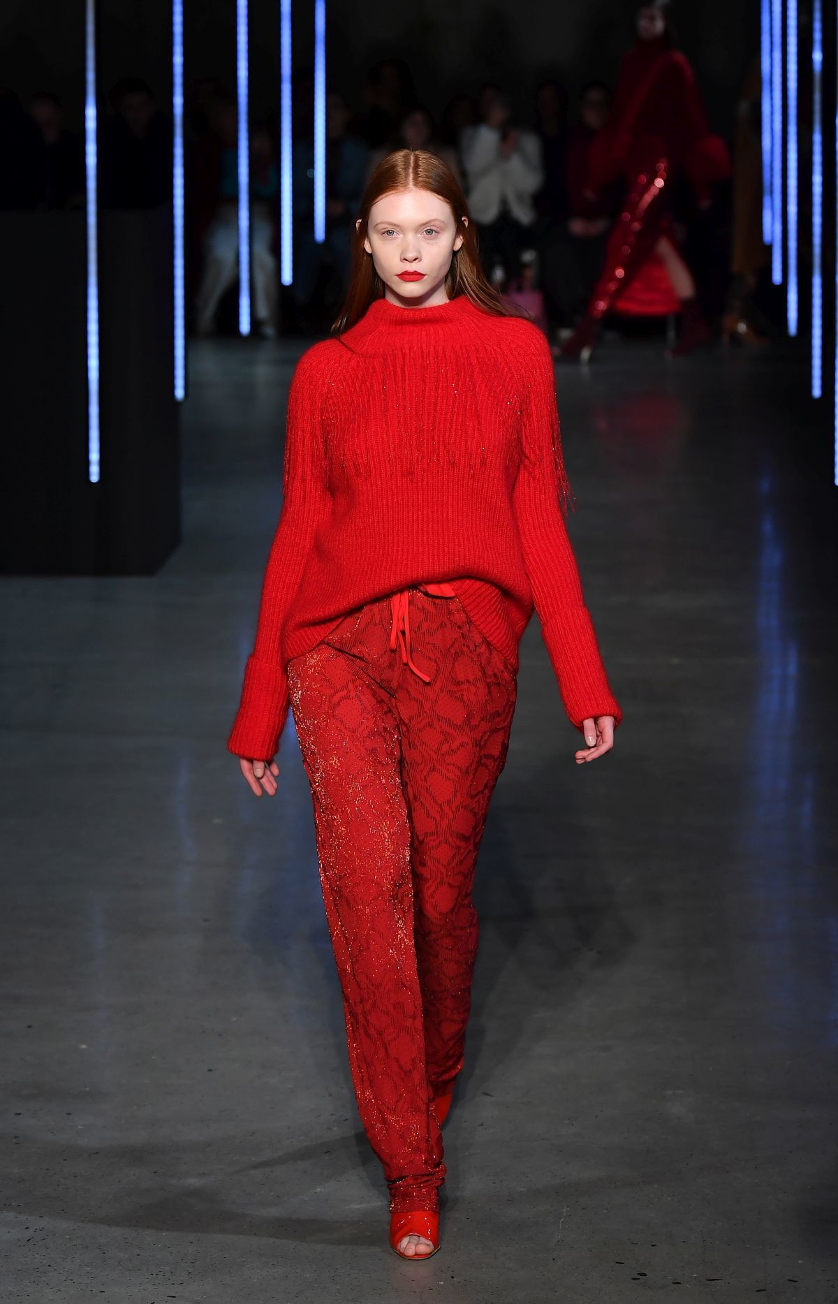 Ha már a színeknél tartunk – és utaltam is rá -, ki kell emelni a pirosat, ami a pipacsszíntől a lángvörösön át a buja bíborig számtalan változatban feltűnt, és hogy fokozzák a tervezők a hatást, jellemzően az egész outfitre ráhúzták a vad árnyalatot.