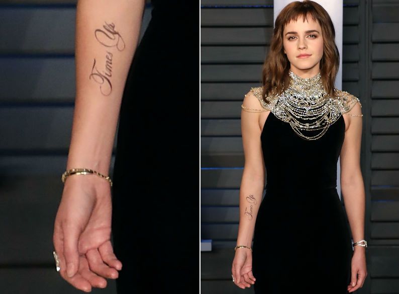 Műtetoválással az alkarján jelent meg Emma Watson a Vanity Fair Oscar-partiján, ezzel is kifejezve a szexuális zaklatások ellen szerveződött Time’s Up mozgalom iránti elkötelezettségét. A tetkóba azonban helyesírási hiba csúszott, ugyanis kimaradt a „Time” és az „s” közötti aposztróf, így a Times Up felirat volt olvasható a színésznő karján.