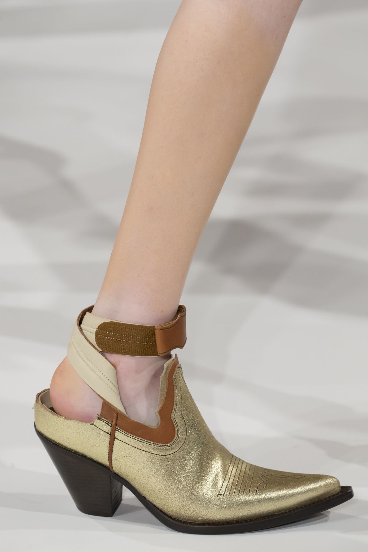 A karakteres, hegyes orrú cipők, a jellegzetes, hímzésszerű minták és az enyhén visszavágott tömbsarok külön-külön és együttesen is népszerűek. Választhatunk hűvösebb napokra ilyen stílusú csizmákat is (Versace), de szandálcipőkre (Maison Margiela), félcipőkre (Chloe) is remek ajánlásokat láthattunk. Aki pedig szereti a kényelmes, de semmiképp sem snassz cipőket, egy westernstílusúval örök barátságot köthet. Miután pedig a trend időről időre visszatér, nem kidobott pénzt egy szebb darabot választani belőle.