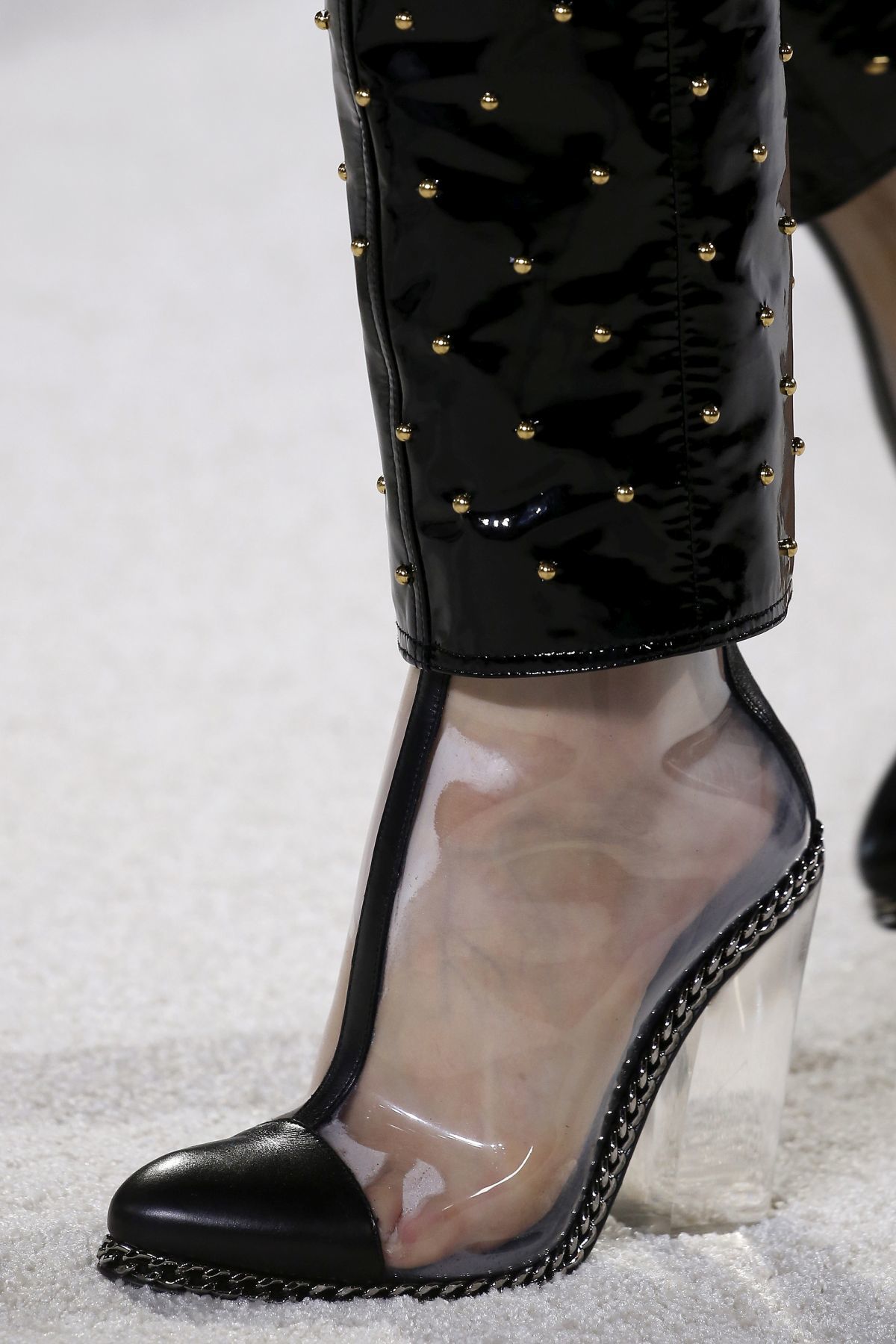 Az egész divatvilág állva tapsolt, mikor Karl Lagerfeld vezénylésével bevonultak az átlátszó plasztikcipők az idei tavaszba. Az, hogy a legkevésbé sem praktikus viseletek, úgy tűnik, senkit nem érdekel, pedig nehéz elképzelni, hogy a hétköznapi életben miként lehet kényelmesen és ízlésesen viselni egy átlátszó műanyag csizmát (Chanel). A trendhez azonban számos, jóval hordhatóbb darab is tartozik, amelyek esetén csak kisebb sávokat dobtak fel átlátszó betétekkel (Valentino), vagy a sarkakat készítették el plasztikból (Salvatore Ferragamo) – ez utóbbi pedig nagyon dögös tud lenni.
