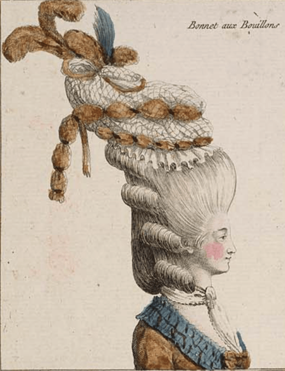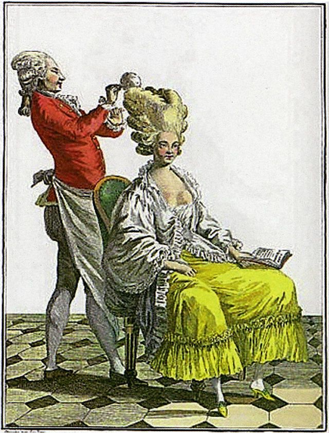 A legnépszerűbbek a szív és a hosszúkás, ládzsa formájú hajviseletek voltak, amelyeket az utolsó fázisban még gazdagon meghintettek fehér vagy szürkés rizsporral is. A legextrémebbek akár 90 centisek is lehettek, viselőik alig bírták el a súlyukat, miközben a megizzadt fejbőr viszketésével is küzdeniük kellett – igaz, erre kéznél voltak kecses célszerszámaik, a kötőtű szerű pálcikák, amikkel sikkesen lehetett vakarászni a fejbőrt. Éjszakára hatalmas hálósapkákkal borították be az alkotásokat, amelyeket akár 30-40 hajtűvel is rögzíteni kellett, amitől egészen biztos, hogy nem teltek kényelmesebben a pihenés órái.