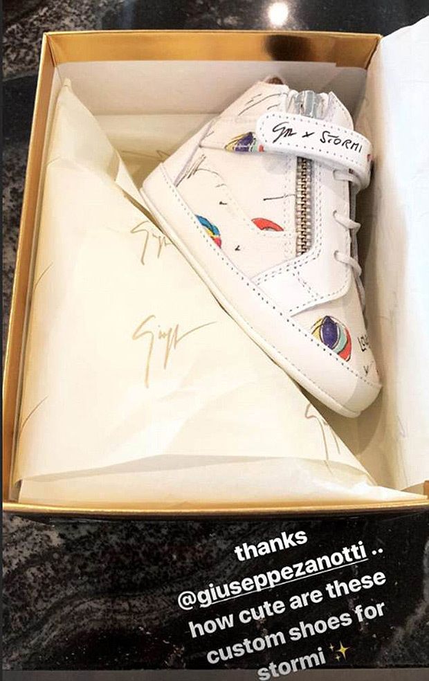 Giuseppe Zanotti ajándékcipőcskéje Storminak (Fotó: instagram/kyliejenner)