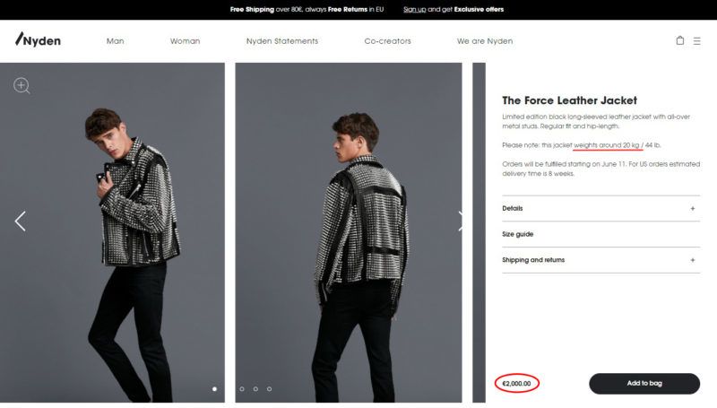 Azóta egyébként picikét finomodtak az árak, az első valódi kollekció esetén már a pólók fele ekkora összeget kóstáltak, igaz, a szegecsekkel kirakott, rojtokban tobzódó bőrdzsekik már odatették magukat. 126 ezer forint a belépő ár, a legsúlyosabb darabok 630 ezerbe kerülnek – a súlyos jelzőt pedig érdemes szó szerint venni, a férfiaknak szánt dzseki cirka húsz kilót nyom!