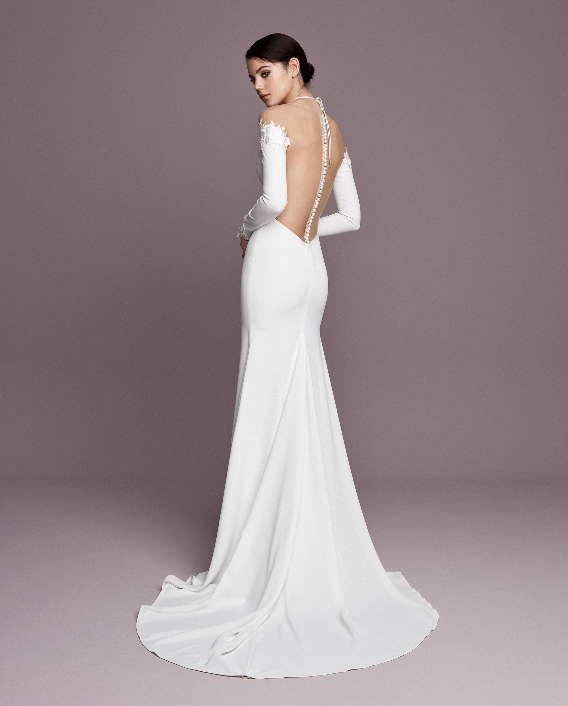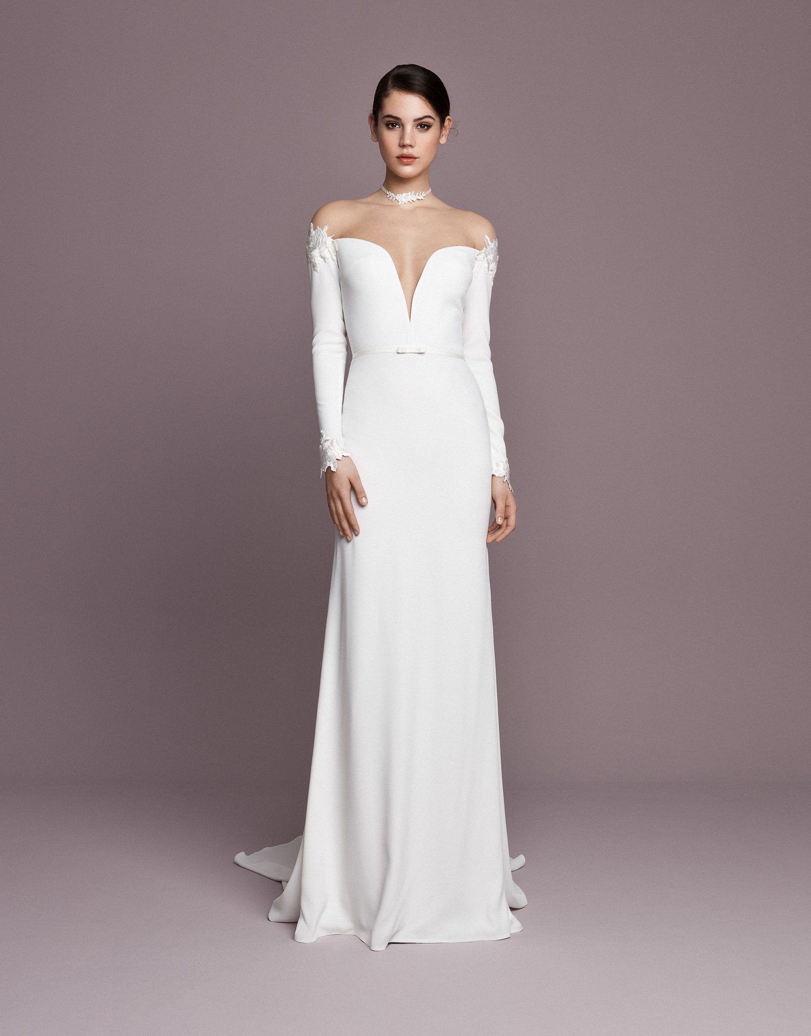 Egyikük egy mélyen kivágott, szív alakú dekoltázsú, a vállakat szabadon hagyó fazon, amely, bárhonnan is nézzük, roppant szexi és elegáns egyszerre. Hogy ne legyen túlzottan kihívó, arról a hosszú ujj és a letisztult, enyhén A-vonalú szabás gondoskodik. Kell is, ha megnézzük, micsoda dögös látványt nyújt a ruha hátulról.