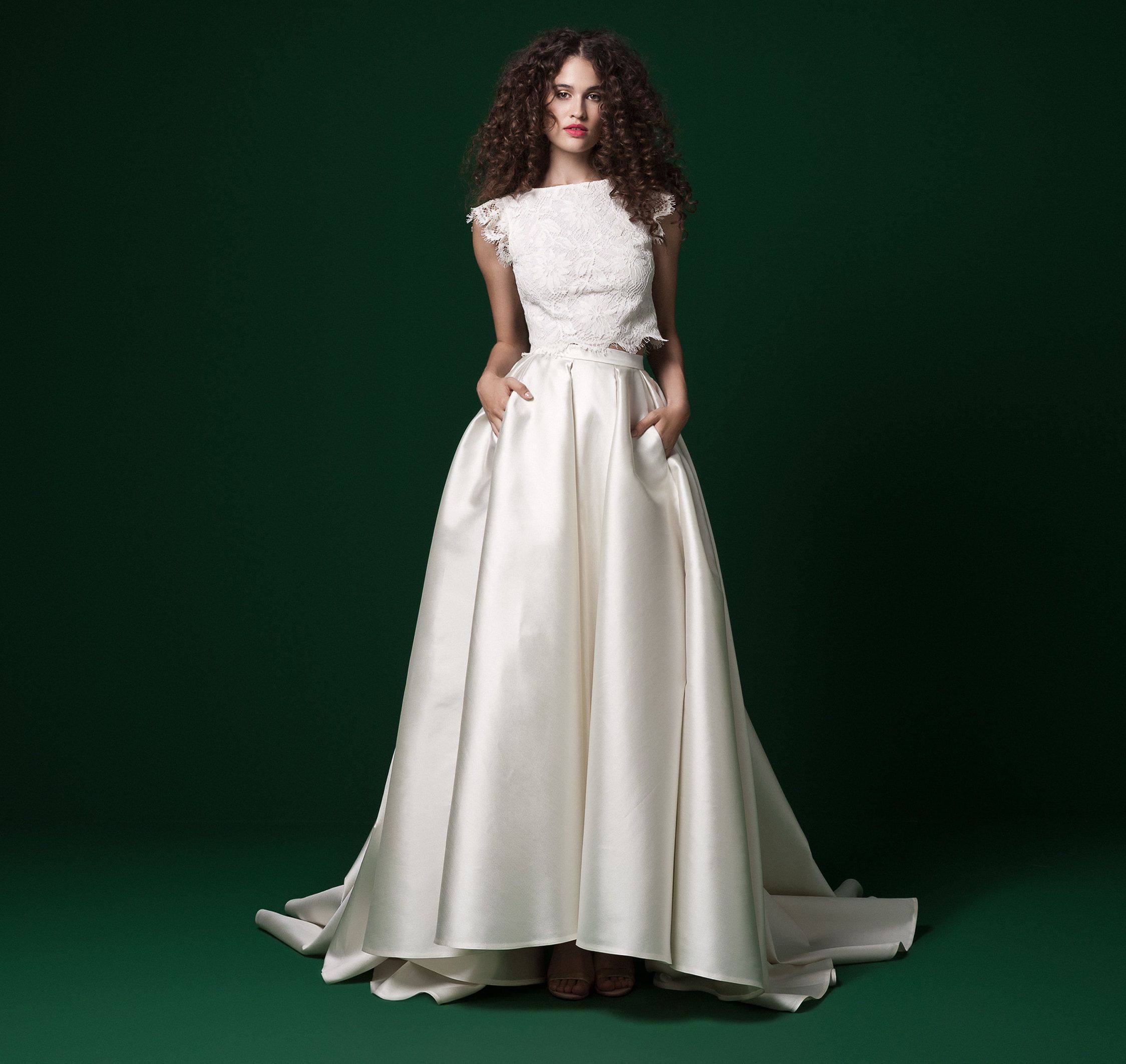 Claudia szereti a nőcis, mélyen dekoltált ruhákat, és valljuk be, ezek csodásan is állnak rajta, így könnyen lehet, hogy esküvői ruhájánál is ilyen fazonra esett választása. Mivel a legesélyesebb az, hogy egy álomszép Daalarna menyasszonyi ruhát viselt, egyértelmű volt, hogy Benes Anita kollekciójából is válogatni fogunk. Rögtön három darabon is megakadt a szemünk.
