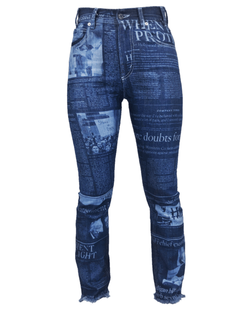 #MeToo témájú kapszulakollekciót dobott piacra két amerikai divattervező, Marta Goldschmied és Gabriella Meyer. A farmernadrágra és a dzsekire munkahelyi szexuális zaklatásokról szóló újságcikkeket nyomtattak.