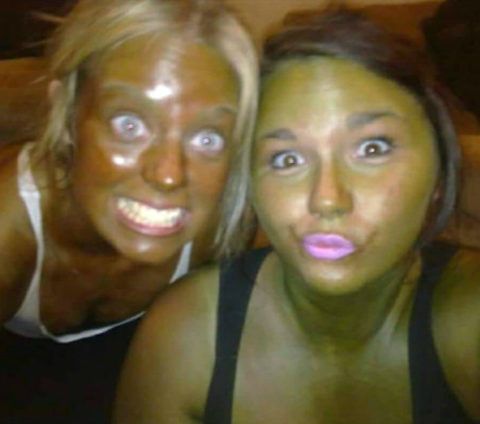A lányokat figyelmeztették, hogy az első barnítás alkalmával „kissé más színűek” lehetnek, de arra azért nem számítottak, hogy a kezelés után az egyikük sötét narancssárgás-barna lesz, a másikuk pedig zöld. Márpedig ez történt.