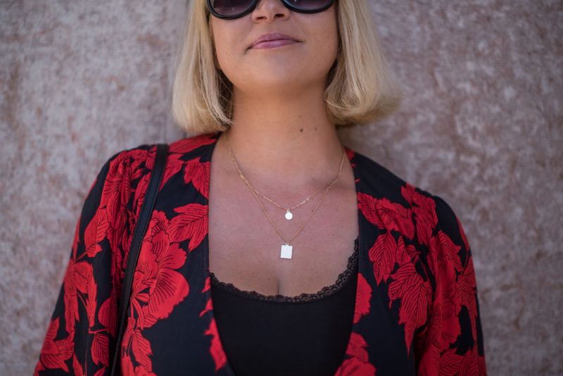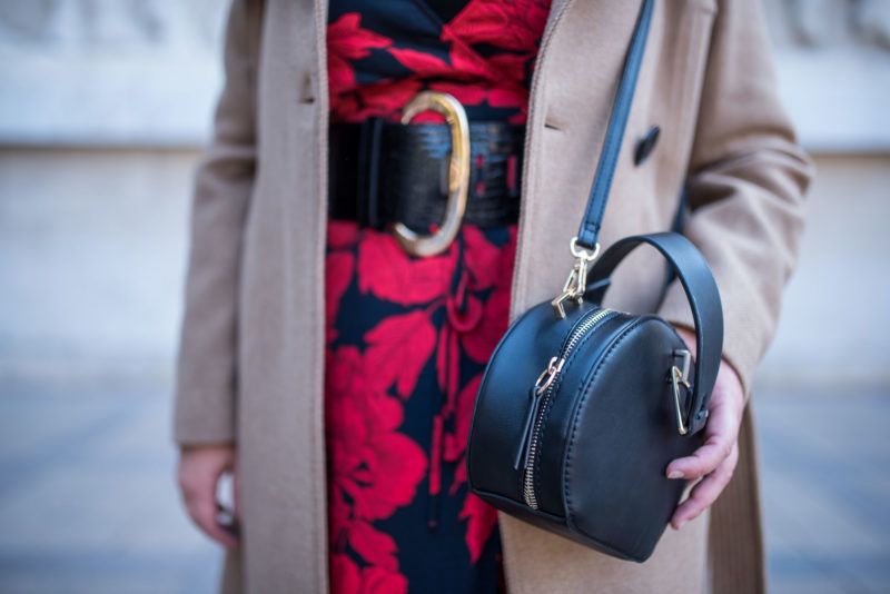 Ha a szettedben valamilyen hangsúlyos fém is helyet kap, érdemes az outfit többi fémes elemét is színben ahhoz igazítani. Az arany színű övcsat ebben az esetben például stílusosan kacsint össze a táska arany színű fémrészeivel és a nyaklánccal.