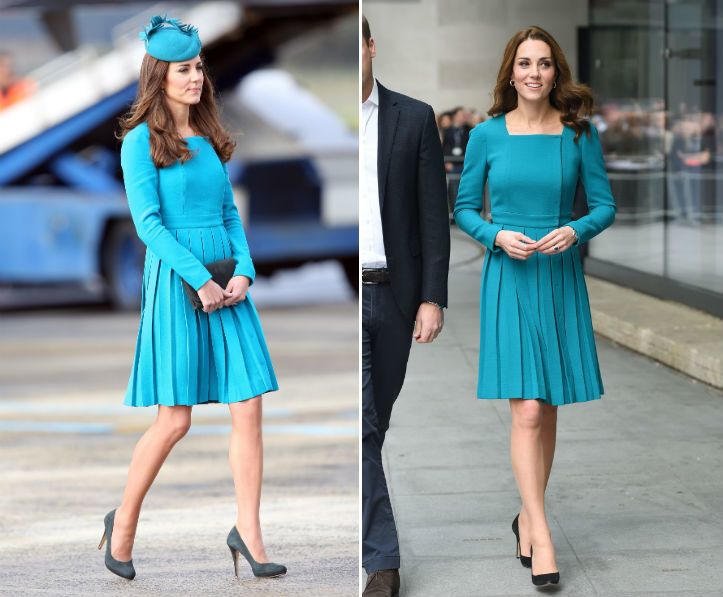 Katalin és Vilmos a minap az bullyingellenes hét alkalmából a BBC székházába látogattak el. A hercegné az eseményen abban a türkiz Emilia Wickstead ruhában jelent meg, melyet először 2014-ben, a hercegi pár új-zélandi látogatásának egyik állomásán viselt. A két képet összehasonlítva ismét meg kell állapítanunk, hogy a hercegné két terhességgel és négy évvel később is ugyanolyan csinos.