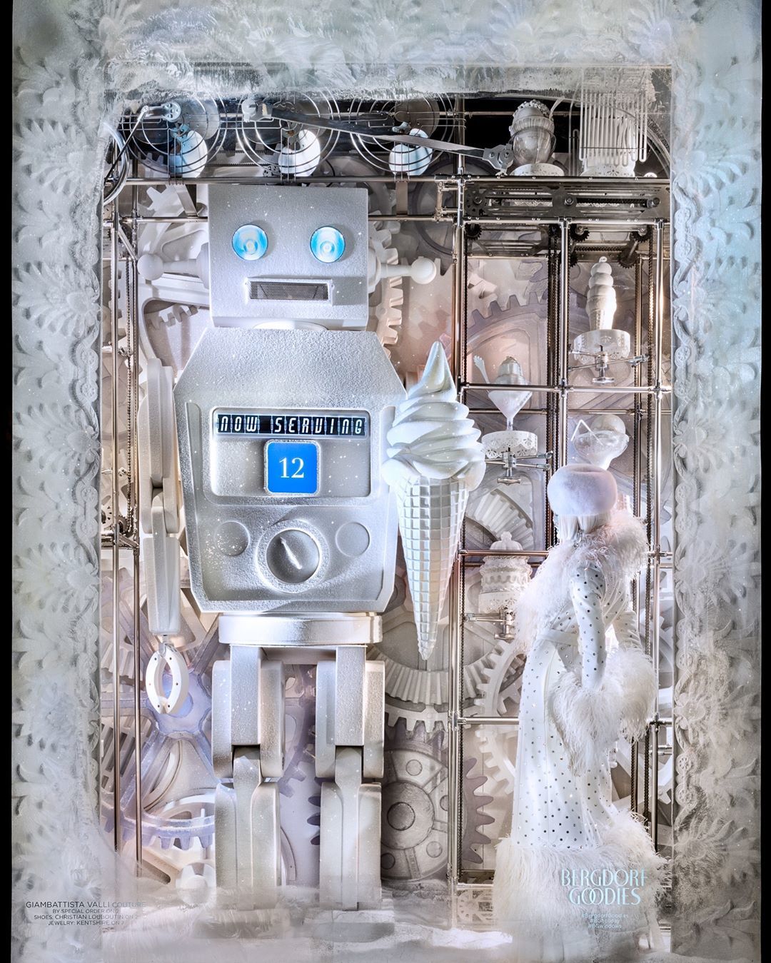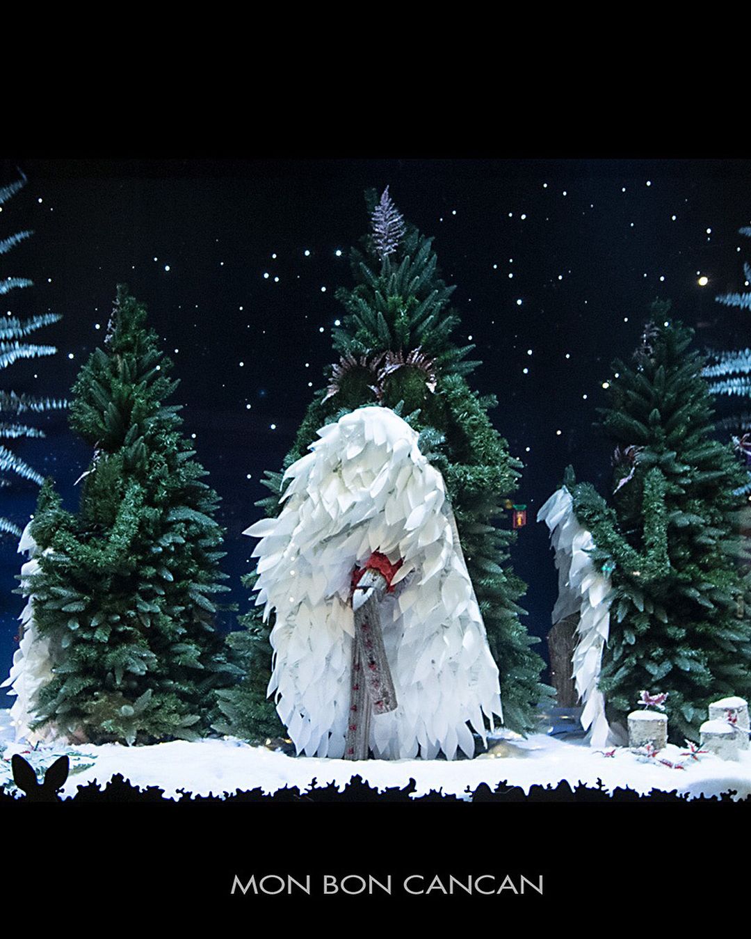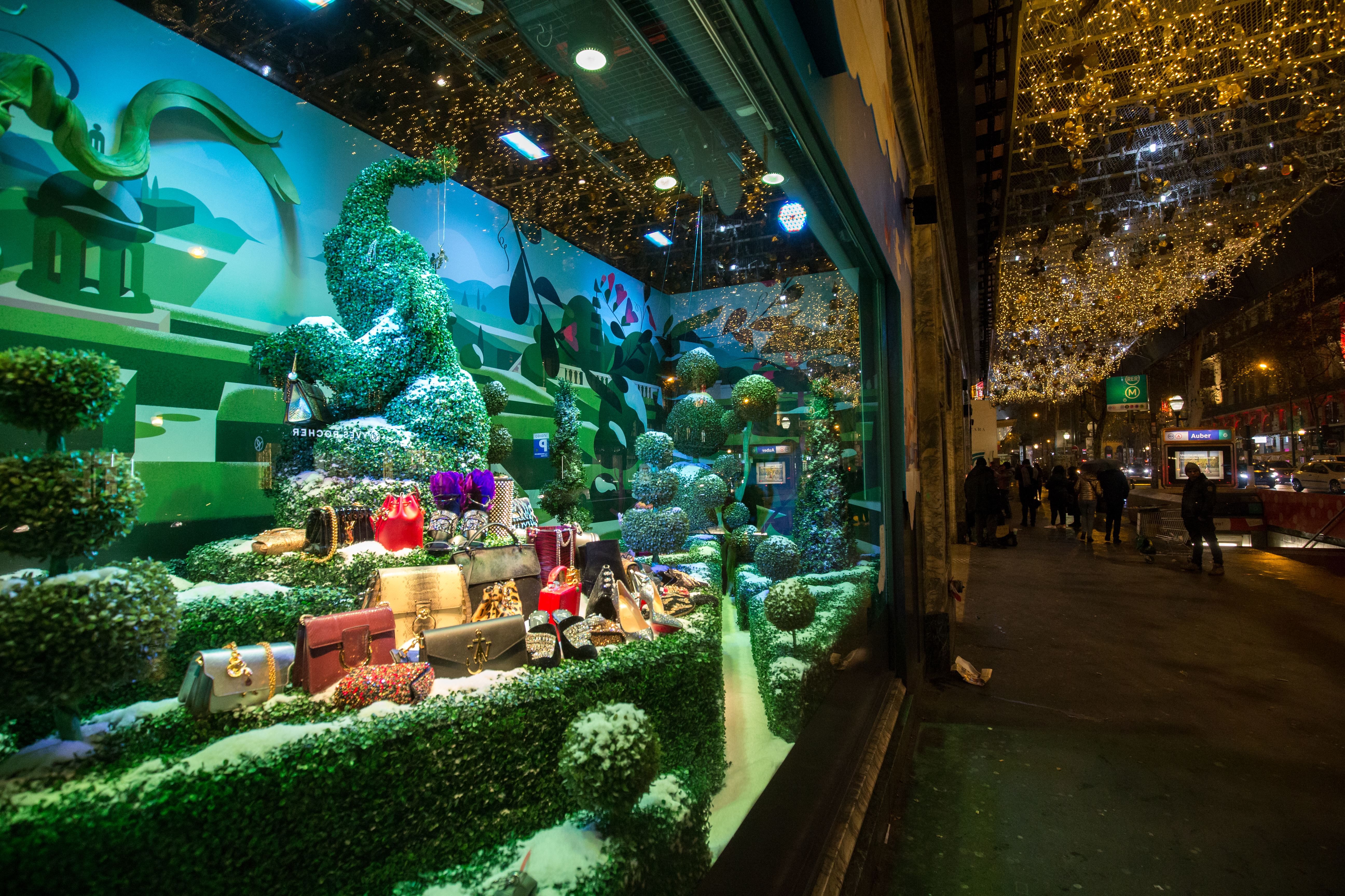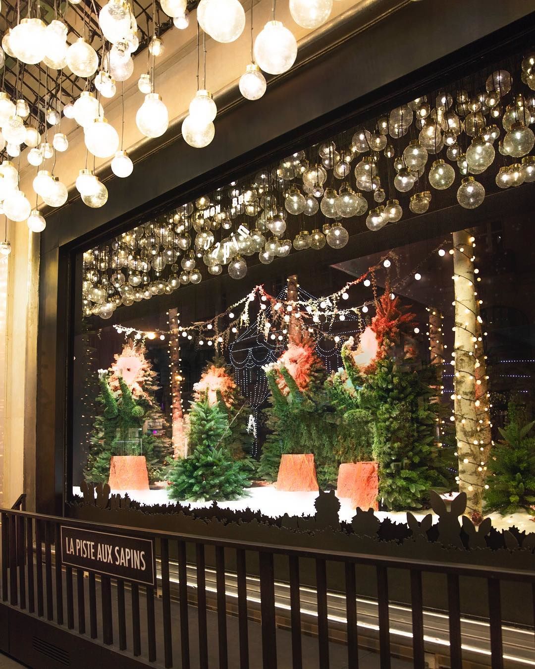 A kirakatok témája frappáns módon a fenyőfa lett, így kisebb erdőkké változott az üvegeken túli világ, amiben fenyőlények táncolnak, öltöznek be a Diótörő jelenetéhez, vagy épp istenként bálványozzák a karácsonyfát.