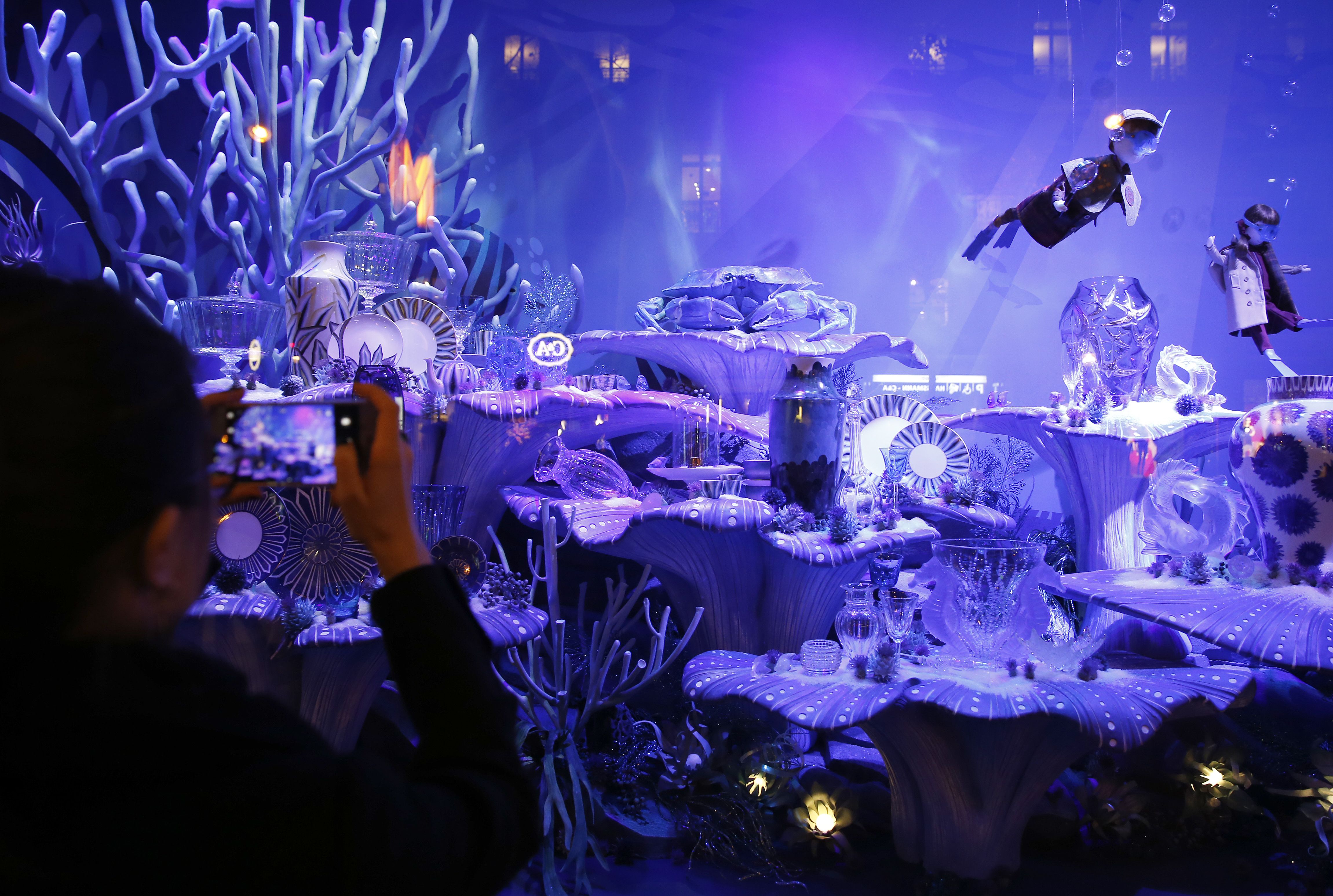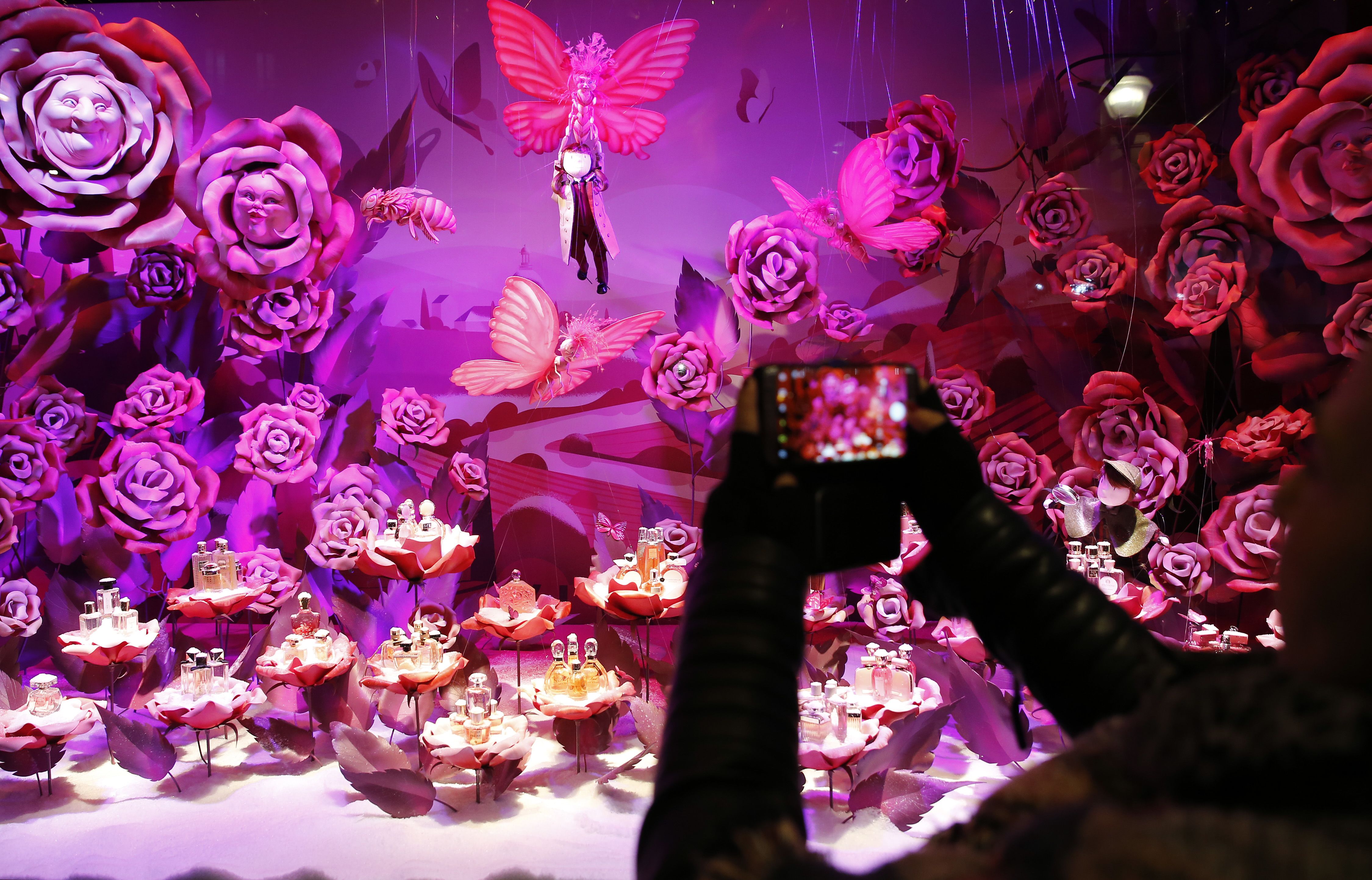 Pink rózsafejeken ülő parfümrét, mesés víz alatti világ és a legnépszerűbb gyerekjátékok gigászi válogatása is látható a párizsi áruház kirakataiban.