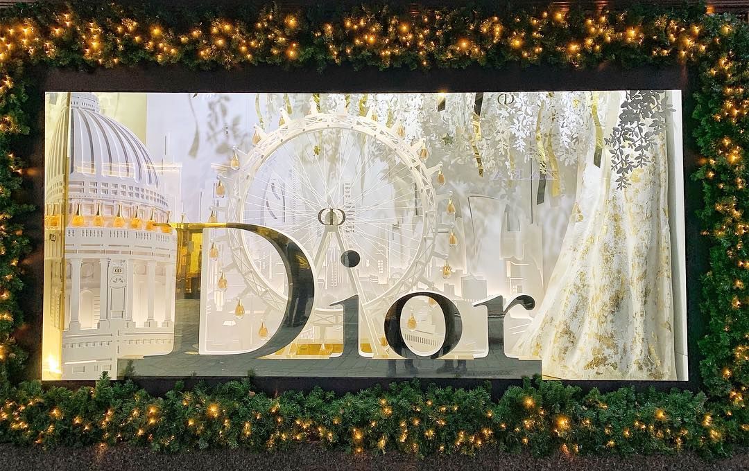 A nagy múltú luxusáruház London nevezetességeit felvonultató Dior-kirakatai között volt, amelyikben óriáskerék forgott, rajta a kultikus J’adore Dior illattal.