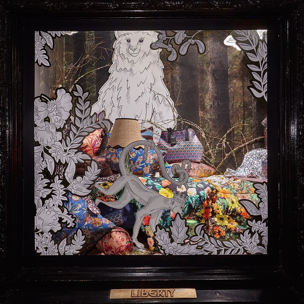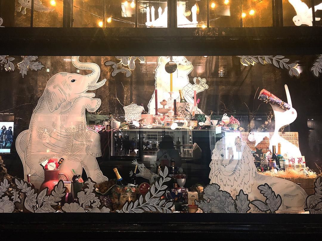 A neves luxusáruház óriási gyerekszínezővé alakította át kirakatait, amelyekben fehér állatfigurák, fák és bokrok közé rejtették az értékes kínálatot.