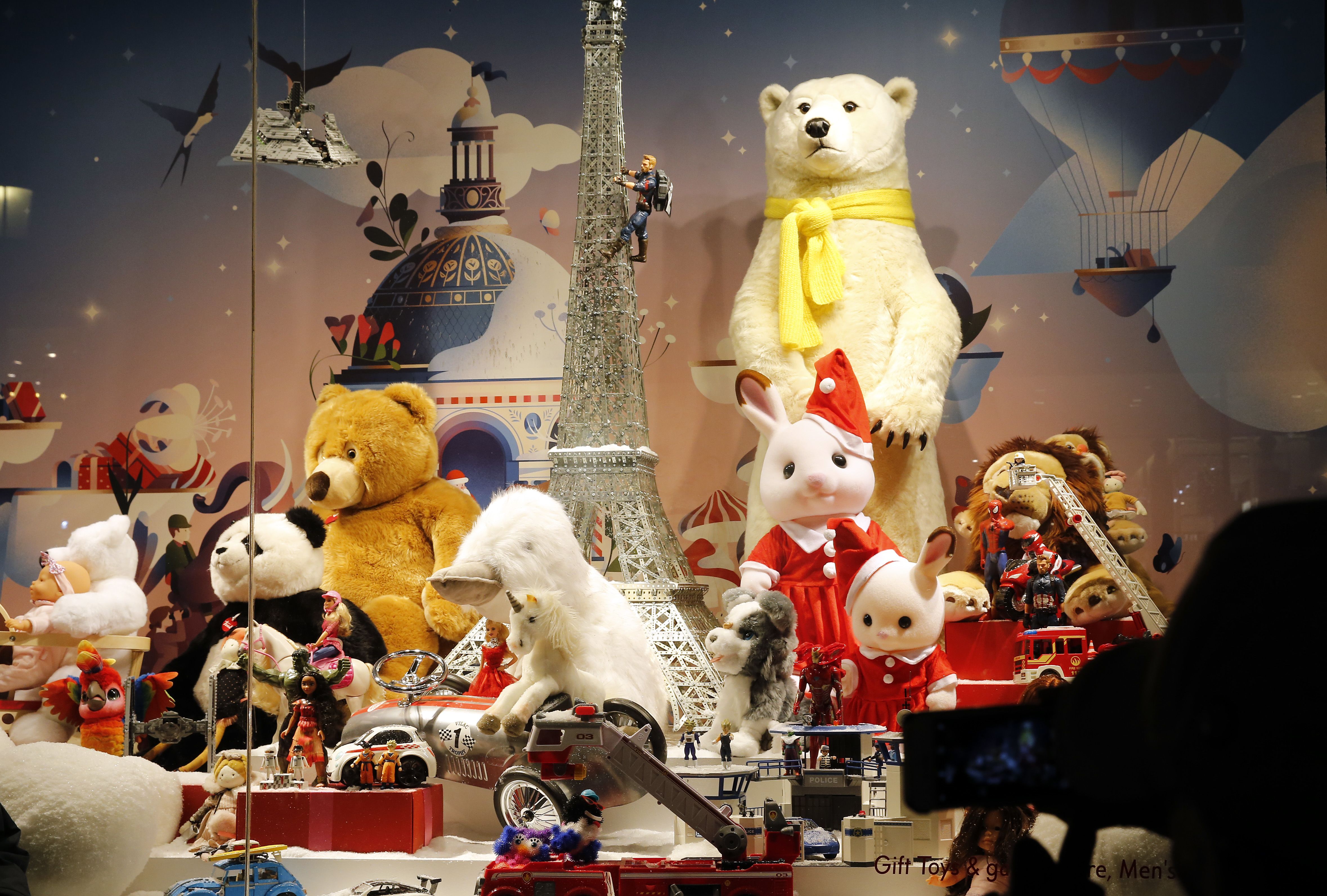 Pink rózsafejeken ülő parfümrét, mesés víz alatti világ és a legnépszerűbb gyerekjátékok gigászi válogatása is látható a párizsi áruház kirakataiban.