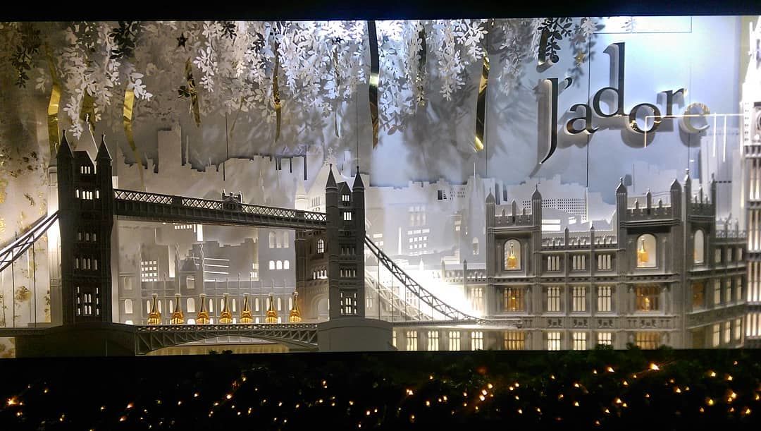 A nagy múltú luxusáruház London nevezetességeit felvonultató Dior-kirakatai között volt, amelyikben óriáskerék forgott, rajta a kultikus J’adore Dior illattal.