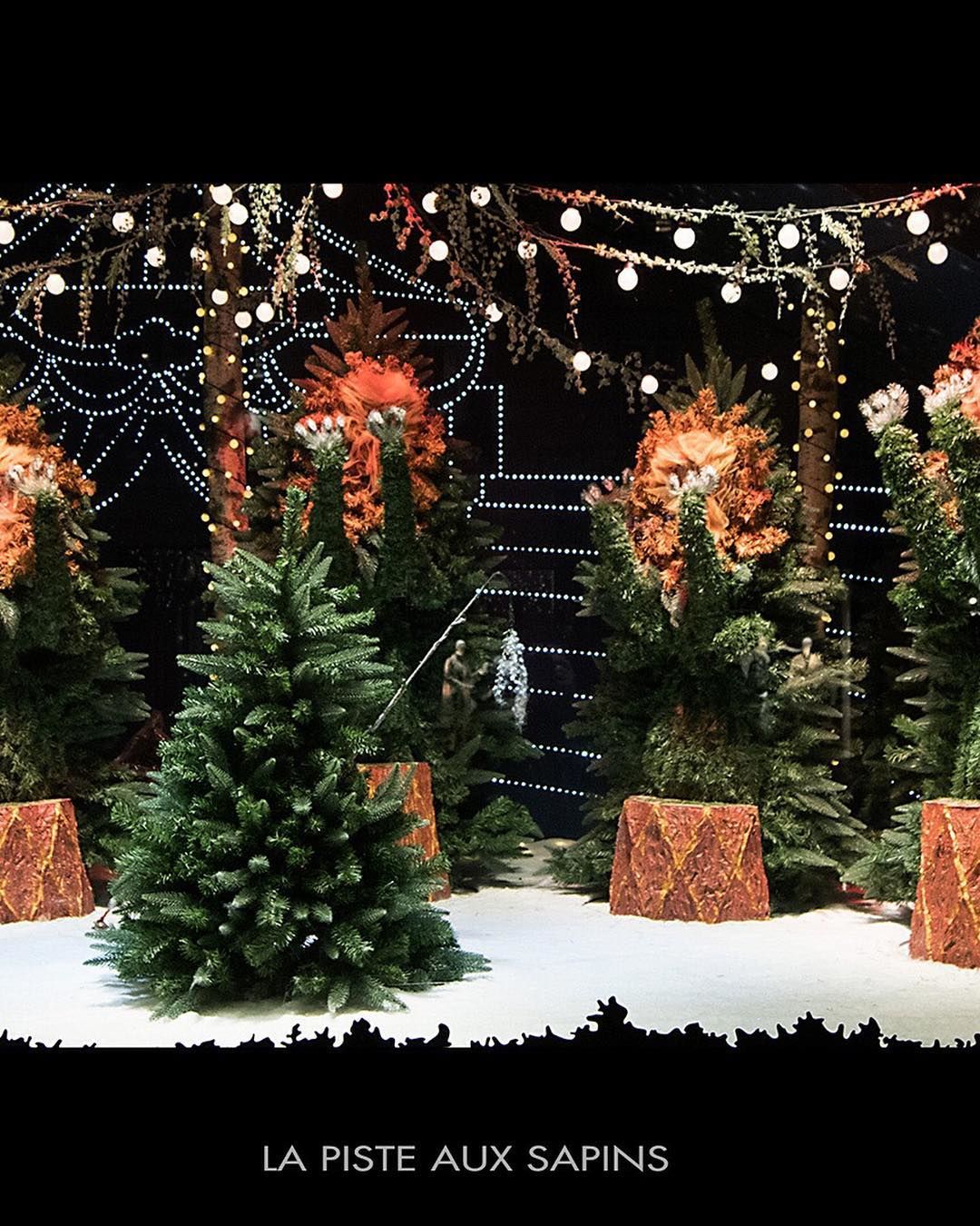 A kirakatok témája frappáns módon a fenyőfa lett, így kisebb erdőkké változott az üvegeken túli világ, amiben fenyőlények táncolnak, öltöznek be a Diótörő jelenetéhez, vagy épp istenként bálványozzák a karácsonyfát.