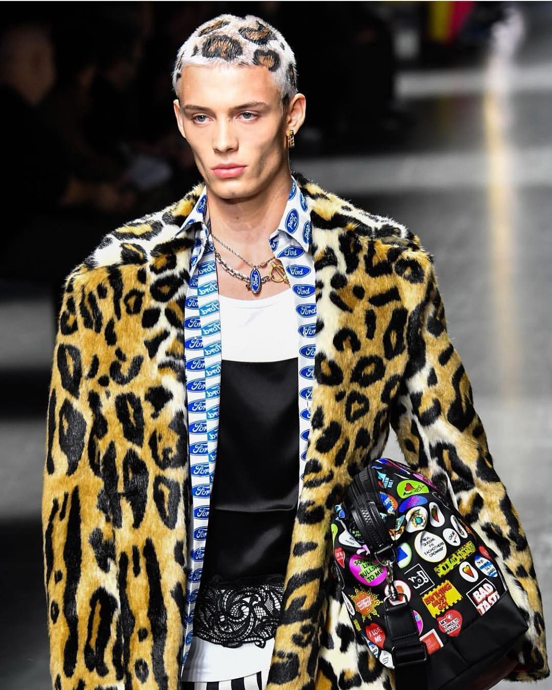 Köszönhette mindezt annak, hogy a Milánói Férfi Divathét eseményén az ő fejformáját ítélte a fodrász és stylist a legalkalmasabbnak arra, hogy leopárdmintákat fessenek rá. A frizkó olyan jól sikerült, hogy maga Donatella Versace is lőtt egy szelfit a modellel, akinek az akció két nap alatt tízezer új követőt hozott az instán, szépen feltolva a reputációját a következő időszakra.