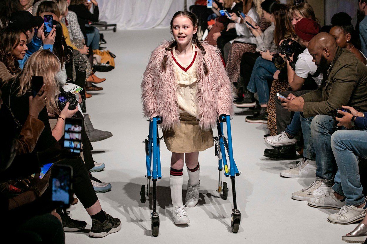 A 11 éves Katie Renshaw eddigi élete nagy részét kerekesszékhez kötve élte le. A kislánynál csecsemőkorában cerebrális parézist diagnosztizáltak. Három évvel ezelőtt egy komoly, 9 órás műtéten esett át, majd egy újabb beavatkozás és intenzív fizioterápia után tavaly tette meg első lépéseit. Az idei londoni divathéten pedig már modellként debütált.