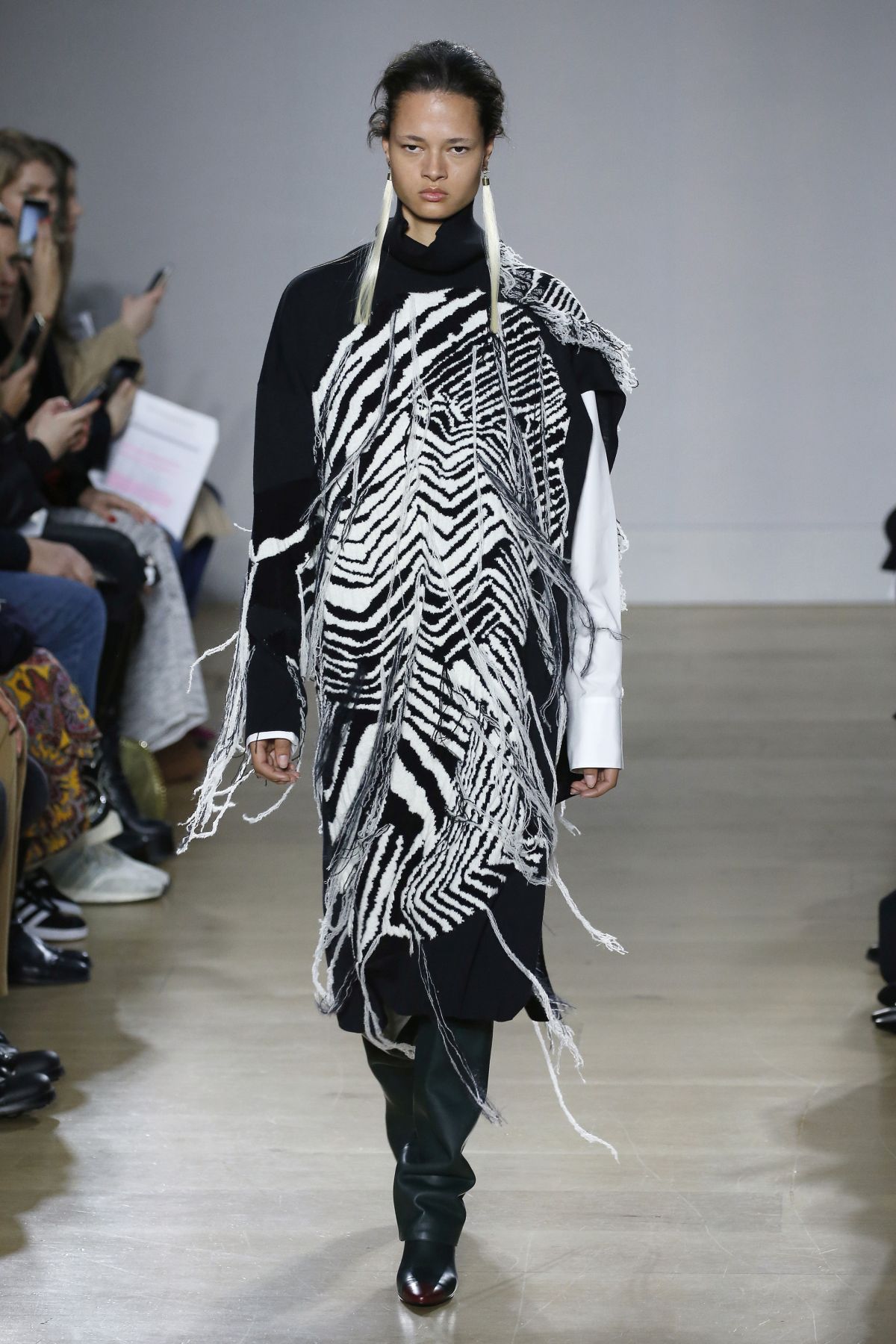 A New York-i Divathéthez hasonlóan Londonban is középpontban voltak az állatminták, amiket a leglátványosabb módon a Halpern dolgozott fel fénylő ruháihoz, de Mary Katrantzou már-már márványmintába torkolló zsiráffoltjai is bámulatosan festettek. Kell ahhoz némi merészség, hogy valaki tetőtől talpig állatmintás ruhába öltözzön, de mint látható, megoldható ez sikkesen még akkor is, ha köldökig ér a dekoltázs.