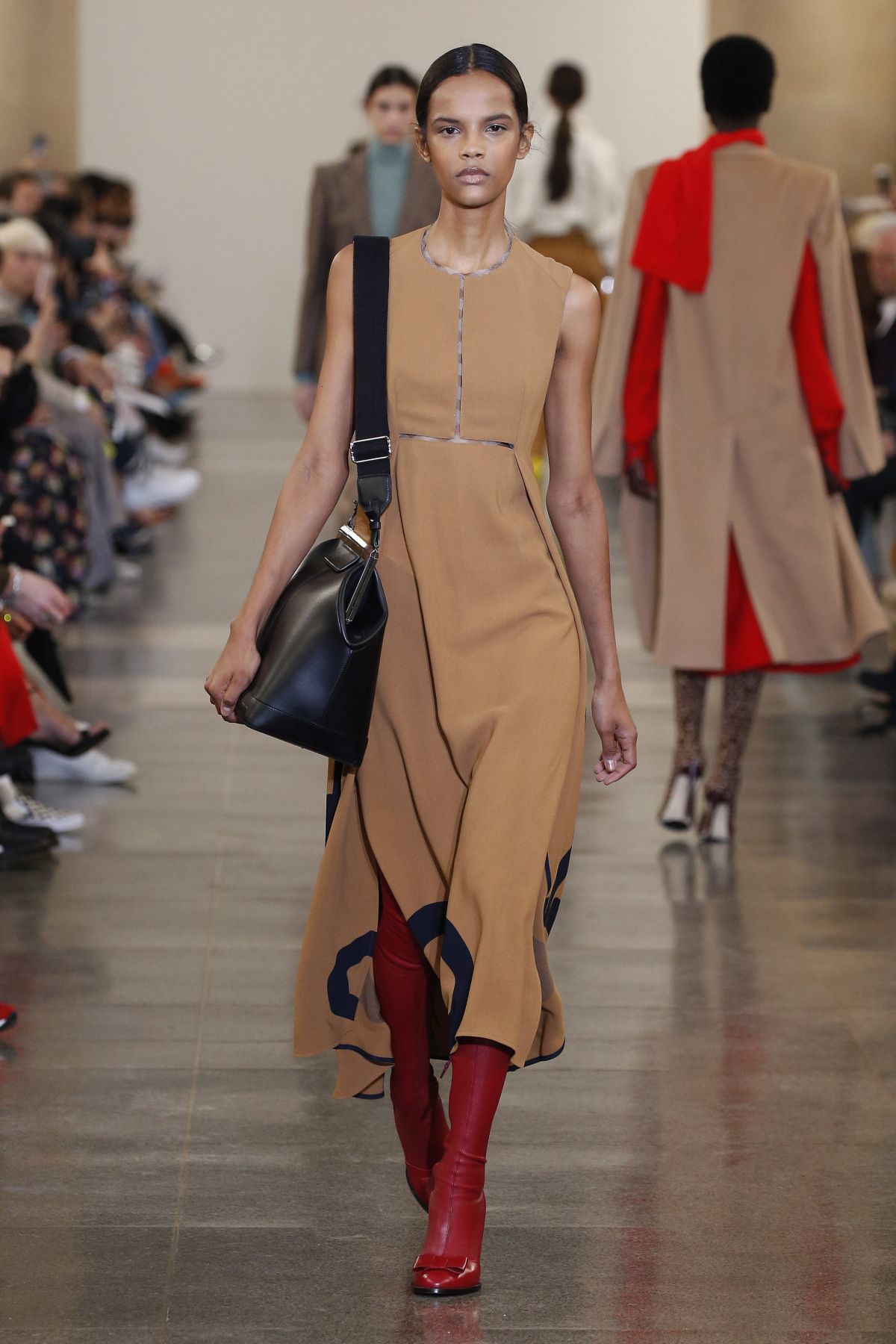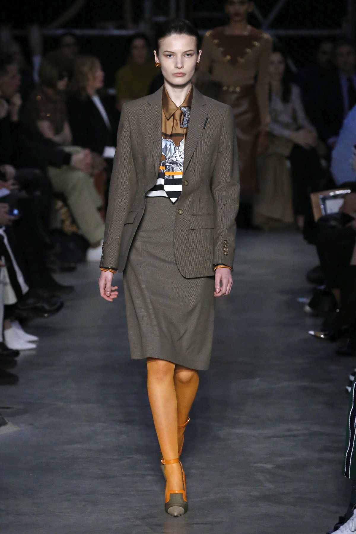 A letisztult irodai sikk több változatban is megjelent a kifutókon, amiket a földszínek fogtak össze egy egésszé. A bézsekbe, drappokba és szürkés árnyalatokba álmodott komoly, mégis nőies szerelésekről persze senkinek sem az unalmas vagy középszerű jelző jutna eszébe, az öltözékek lendületes szabásvonala (Burberry), a kiegészítők karakteressége (Victoria Beckham) ugyanis bőven kárpótolta a szemeket.