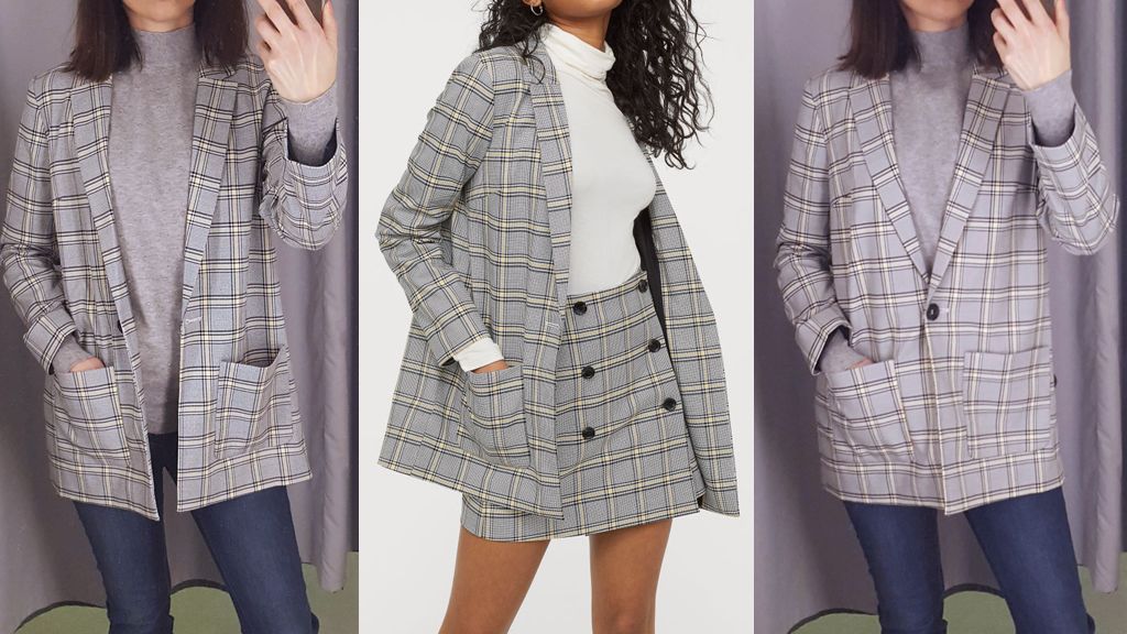 Ez a hosszított, egyenes fazonú blézer igazi trendszetter darab, ráadásul vékonyan bélelt is, így tavaszi kabátként is megállja a helyét. Lezser szabása nem túlzó, így alkattól függetlenül érdemes felpróbálni, plusz még a hossza is rendben van: már takarja a popsit, de még nem nyom össze . Élőben a színe nagyon szép szürkés, amit a vékony sárga kockázás remekül feldob. Méretezése helytálló, a 36-os méret pont jó volt.